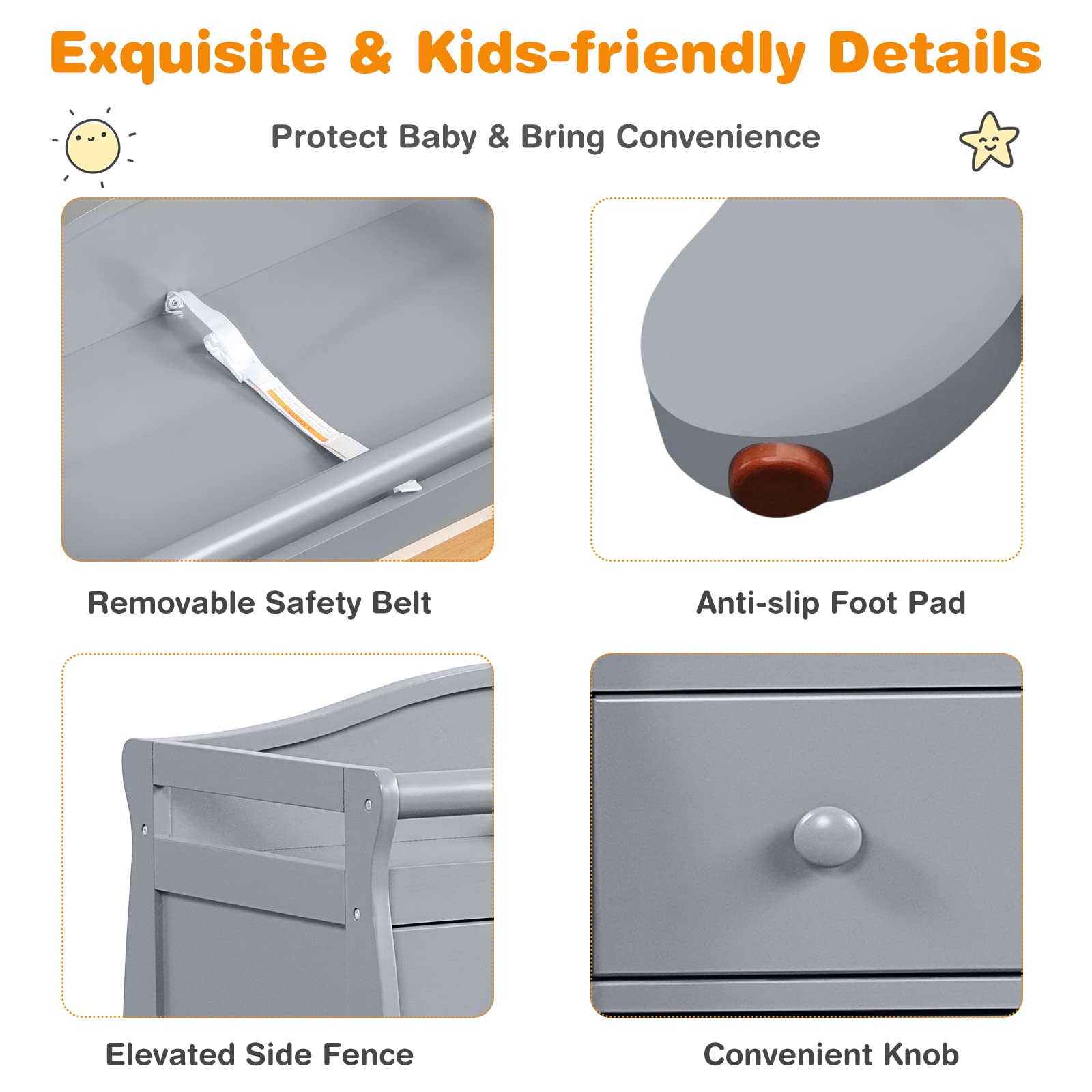 - Convenient Changing Area: Since the dresser chest is designed with changing topper, babies will have a safe and wide space to have their clothes or diapers changed. Meanwhile, its customized height will free parents from frequent bending over and help relieve fatigue of back and waist.