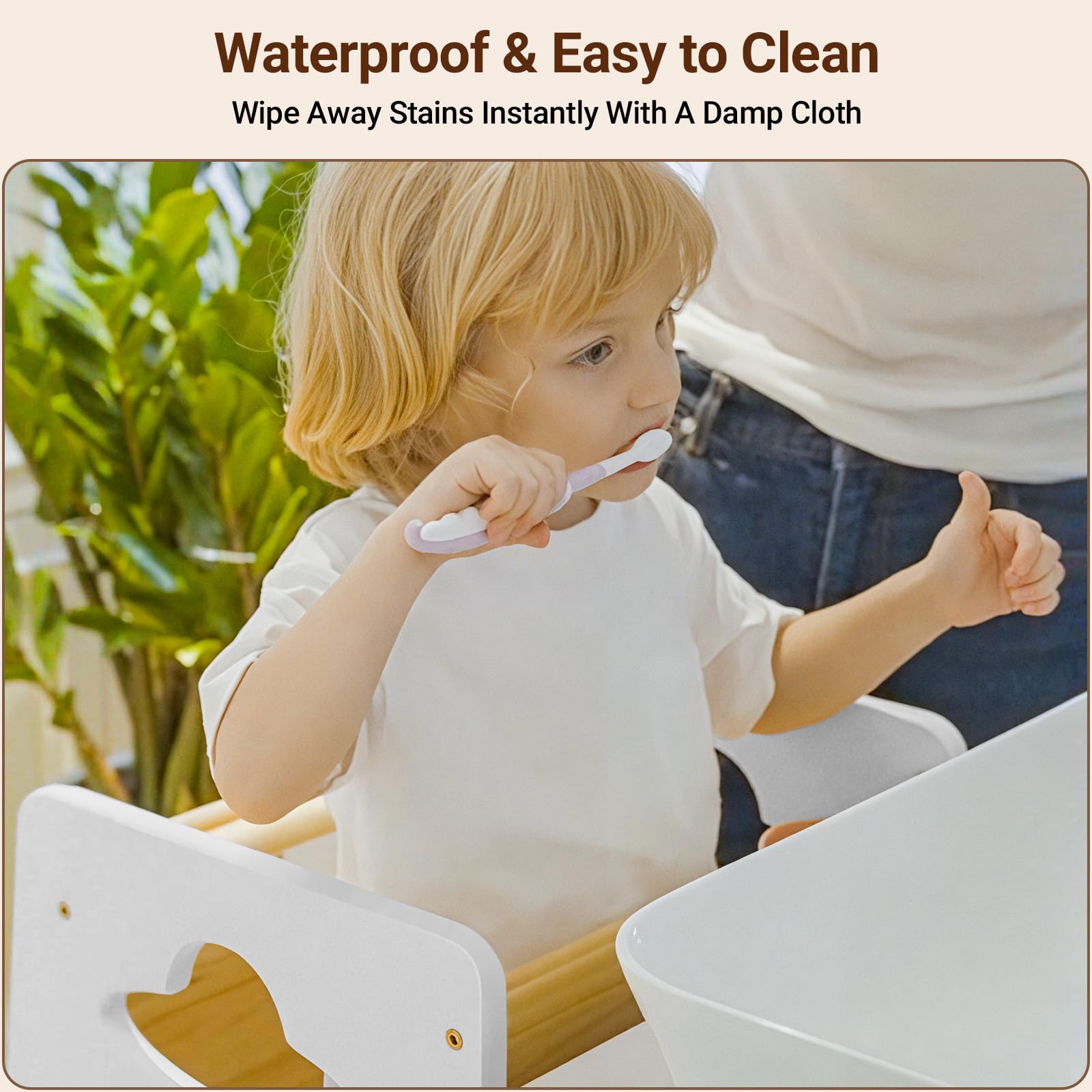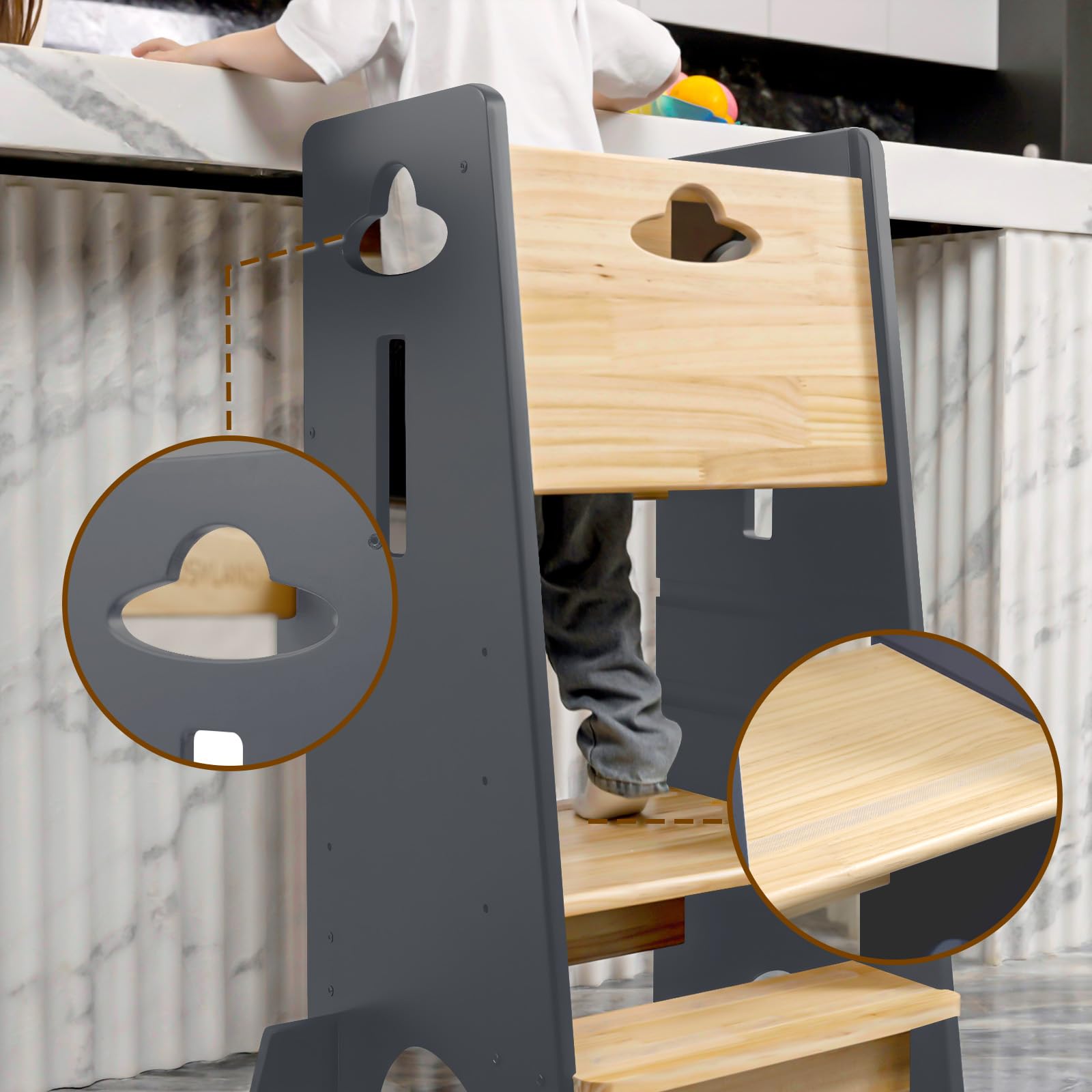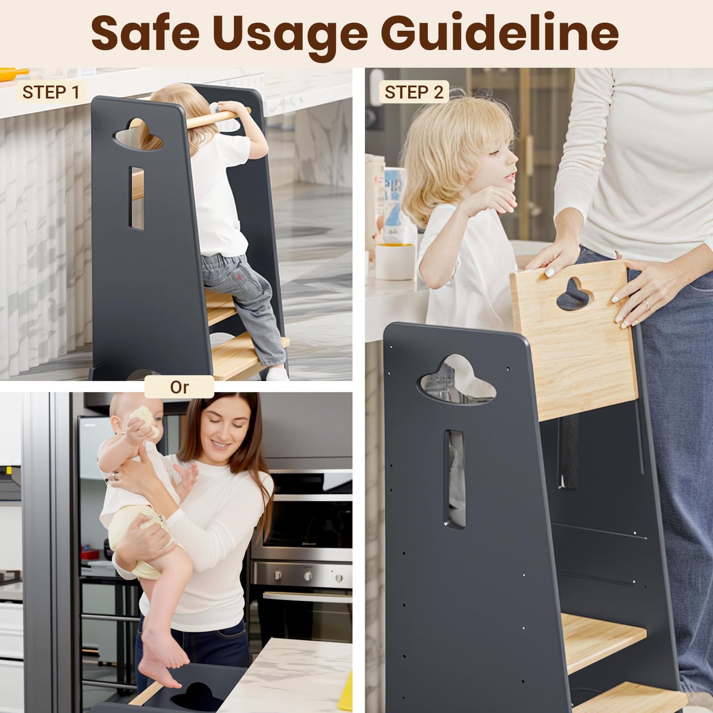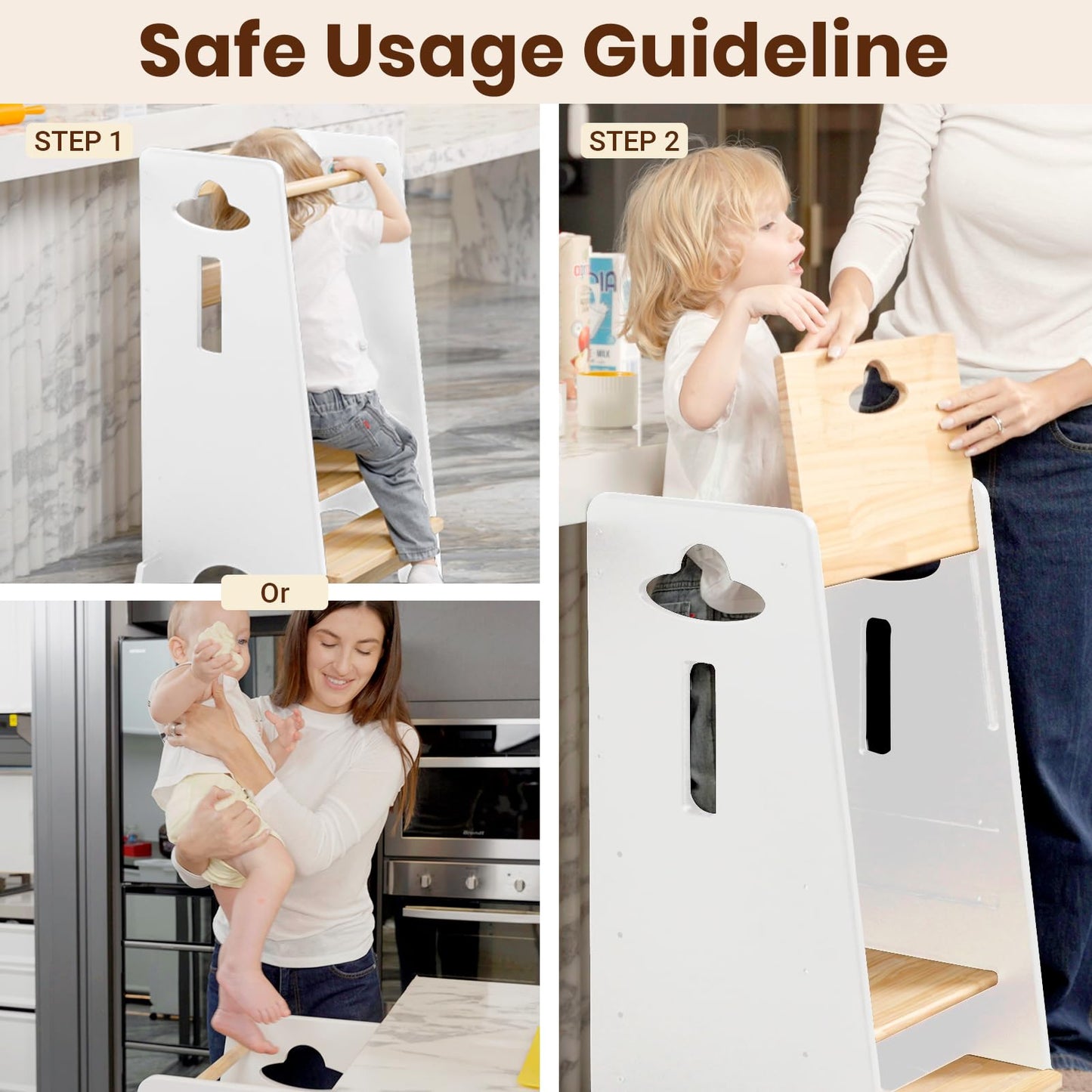 - Hands-Free Convenience & Safe Engagement: This stable learning stool frees up parents' hands by letting kids join kitchen activities instead of tugging at their parents' legs or constantly asking to be picked up. It also keeps them within sight at all times, ensuring their safety.