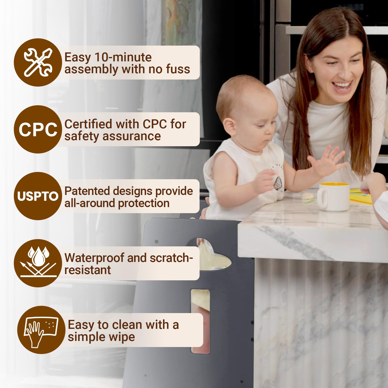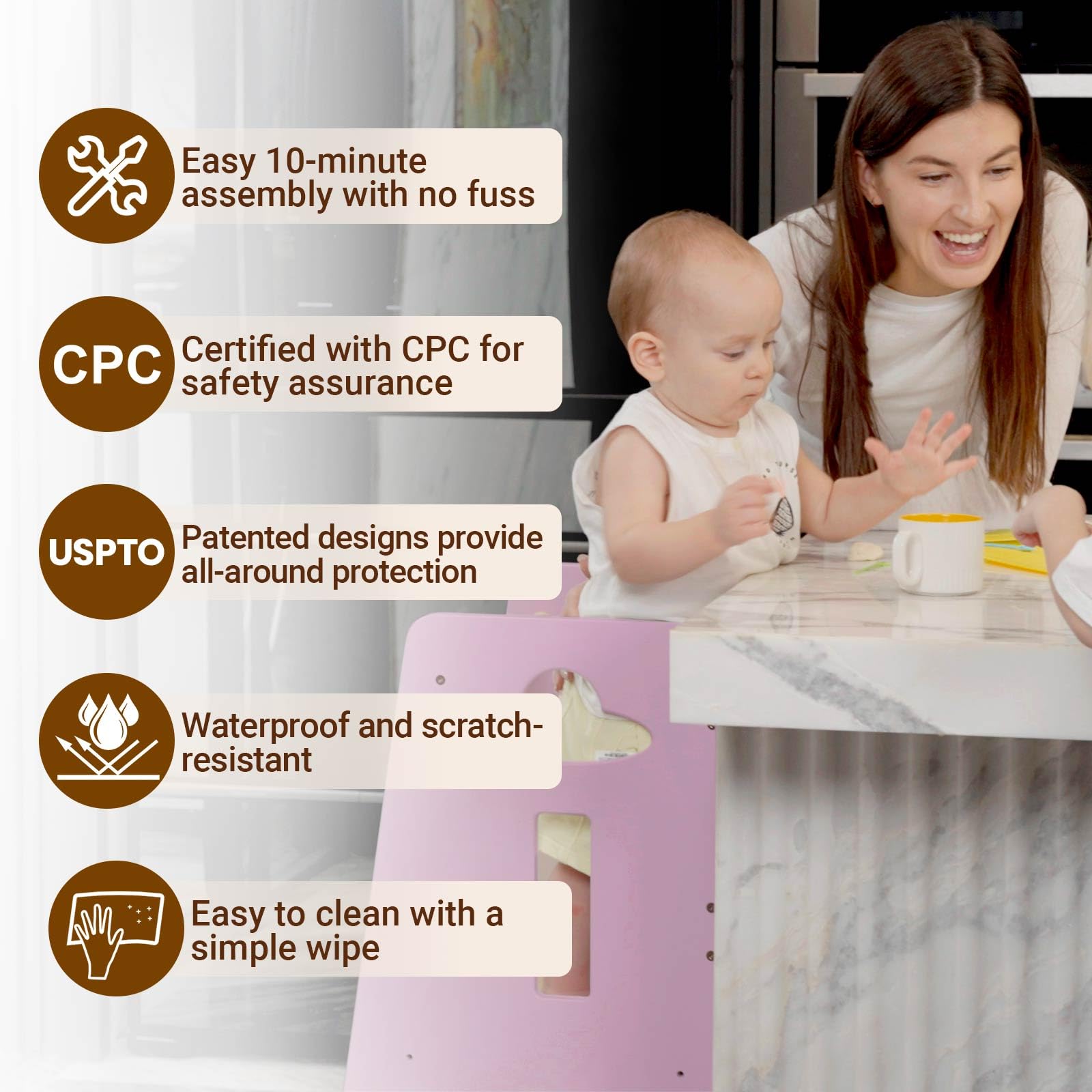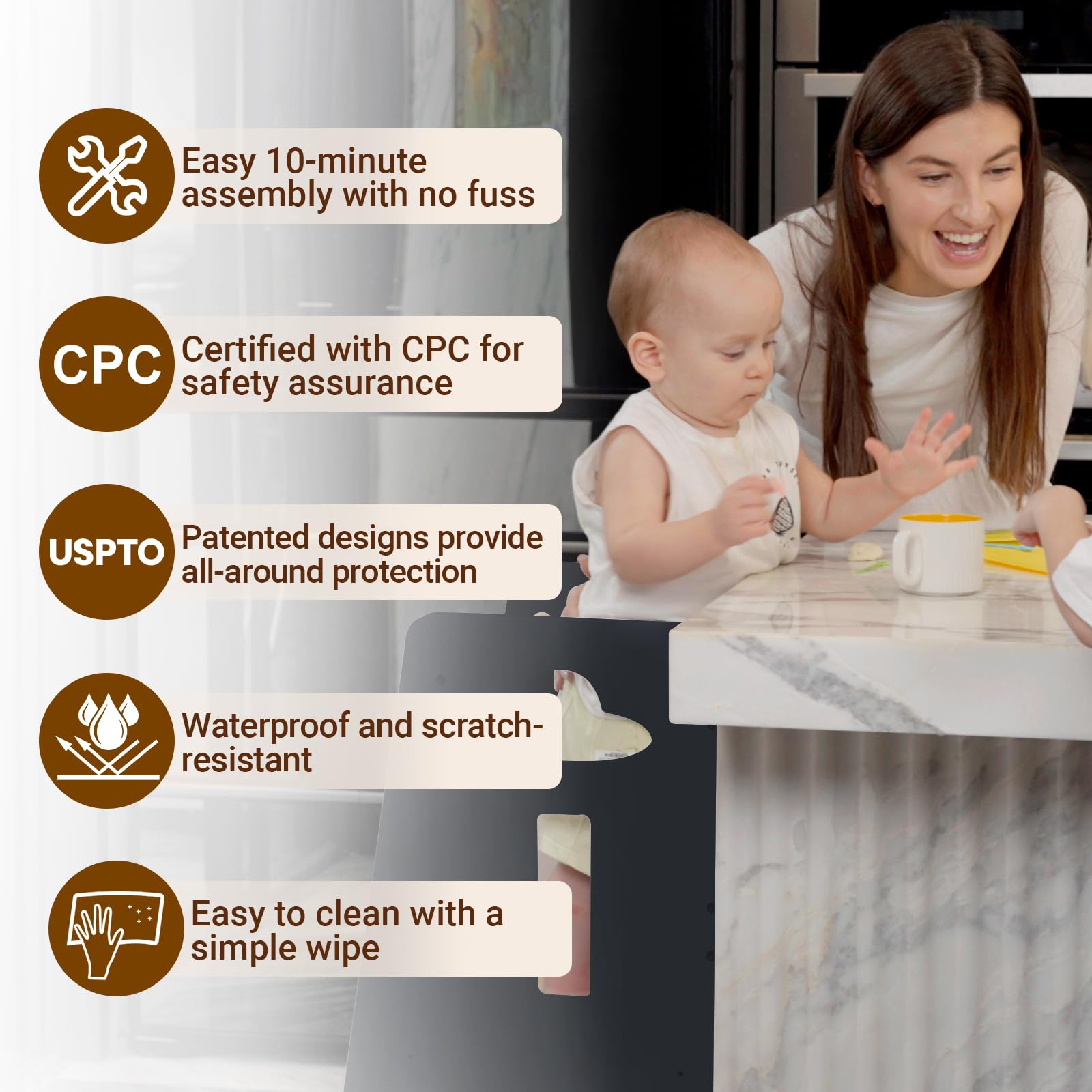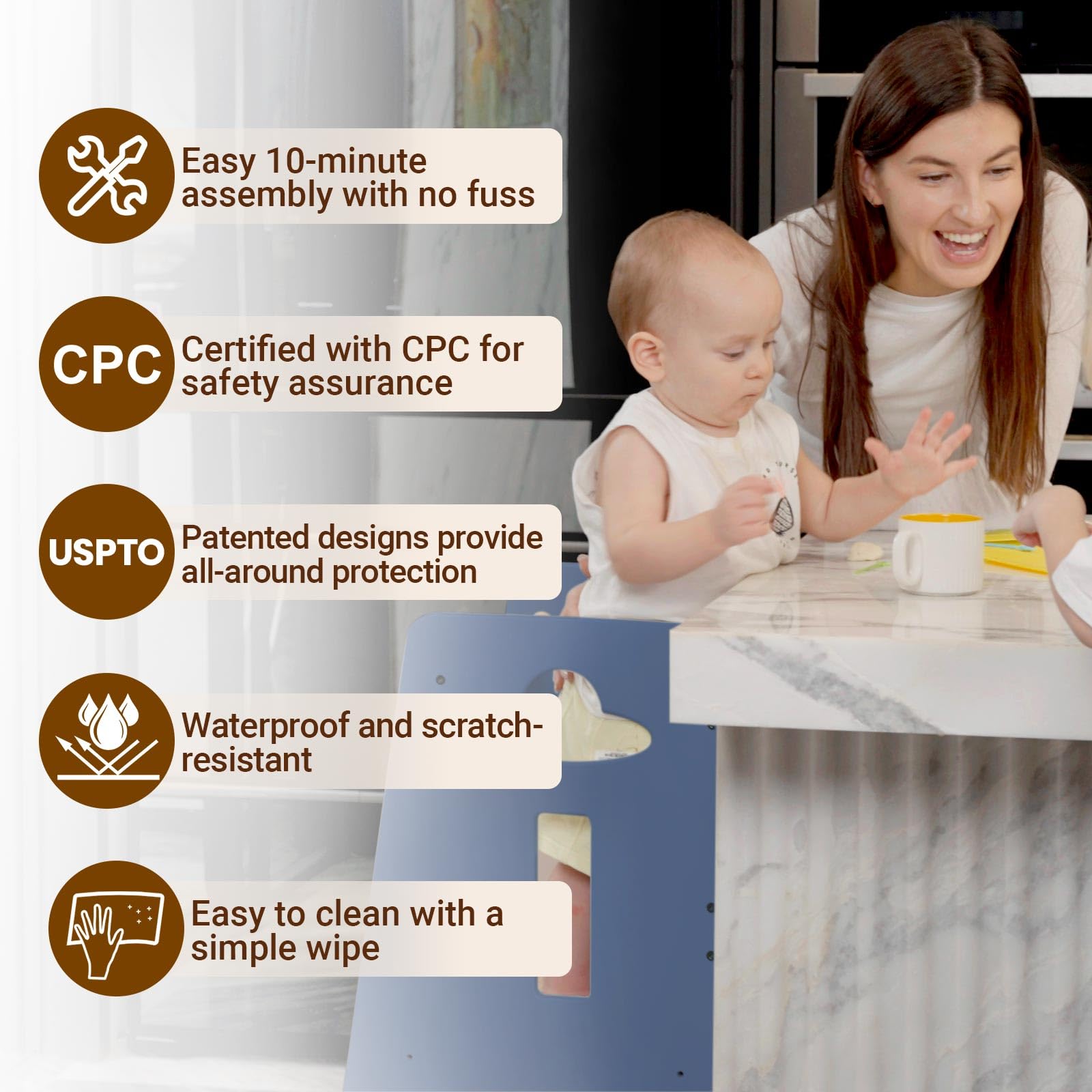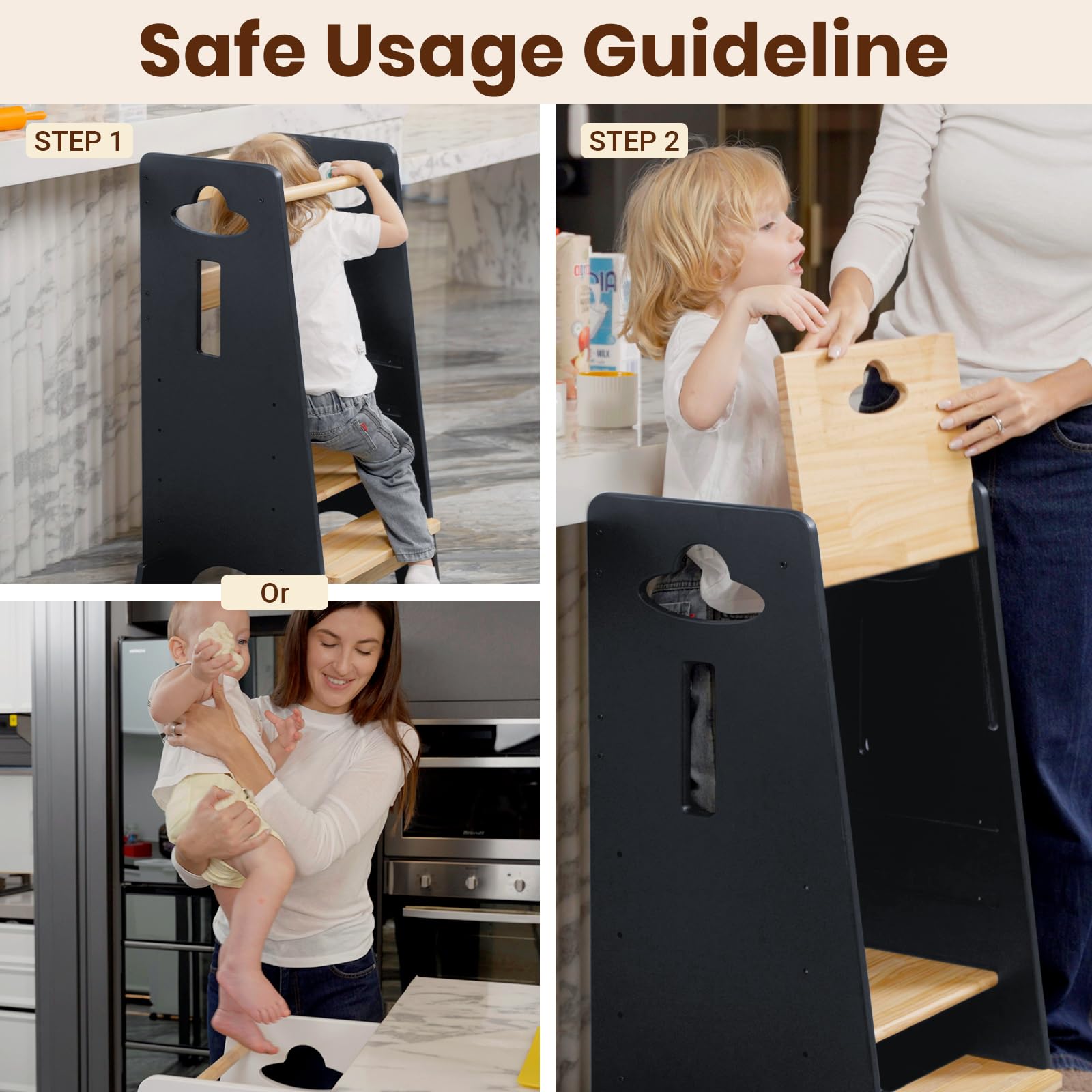 - Wide Anti-Drop Board: Designed for safety, this learning stool features a spacious, removable anti-drop board that ensures your child will never have to worry about falling. Easy to install and remove, it allows kids aged 3 and up to use it independently, giving parents peace of mind while their little ones explore and learn in the kitchen.