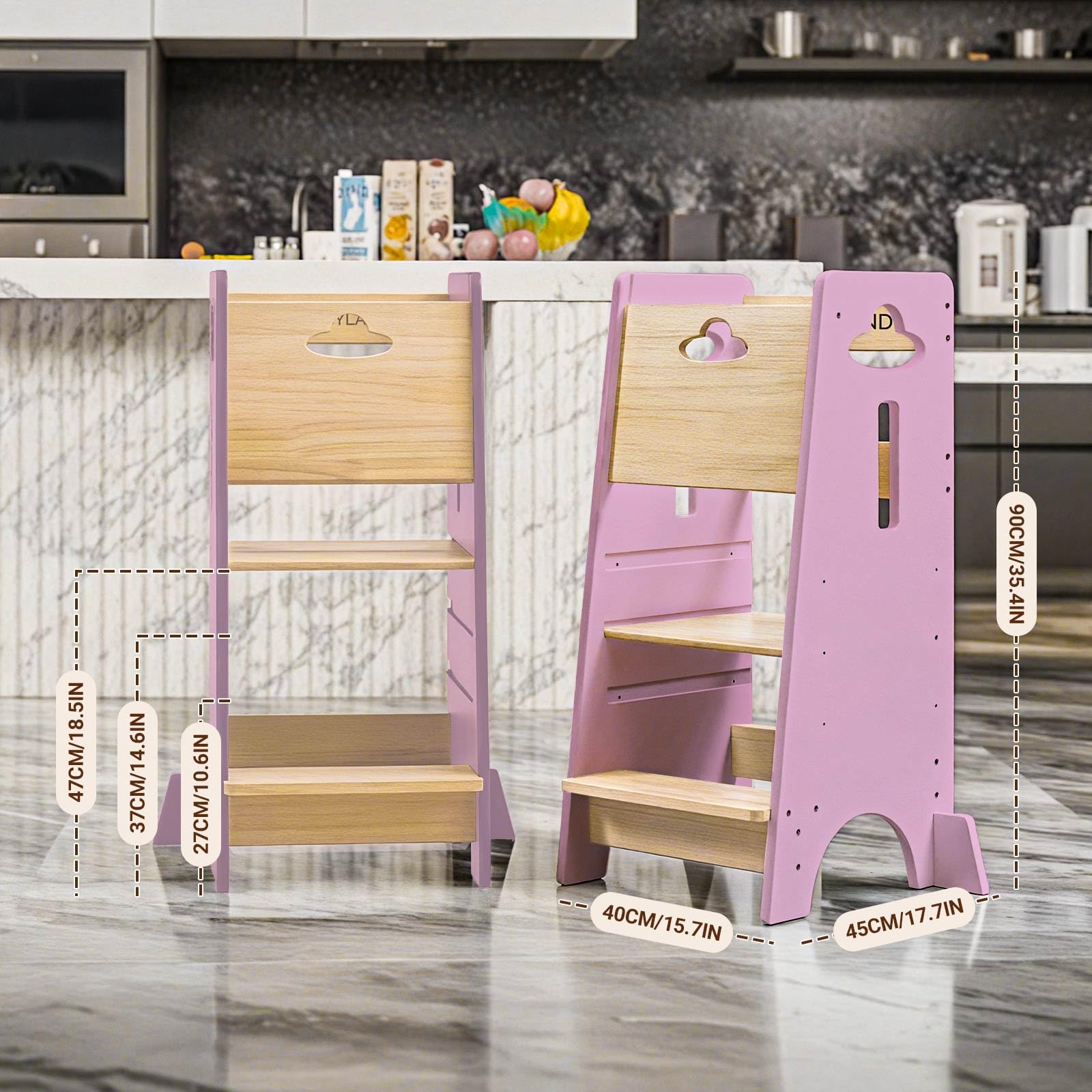 - Three-Level Adjustable: This versatile kitchen tower is designed to accommodate children of varying heights. Suitable for toddlers and kids aged 18 months to 6 years, it helps them reach the kitchen island, counter, or sink with ease. Its adjustable height ensures it grows with your child, making it a lasting addition to your family’s daily routine.