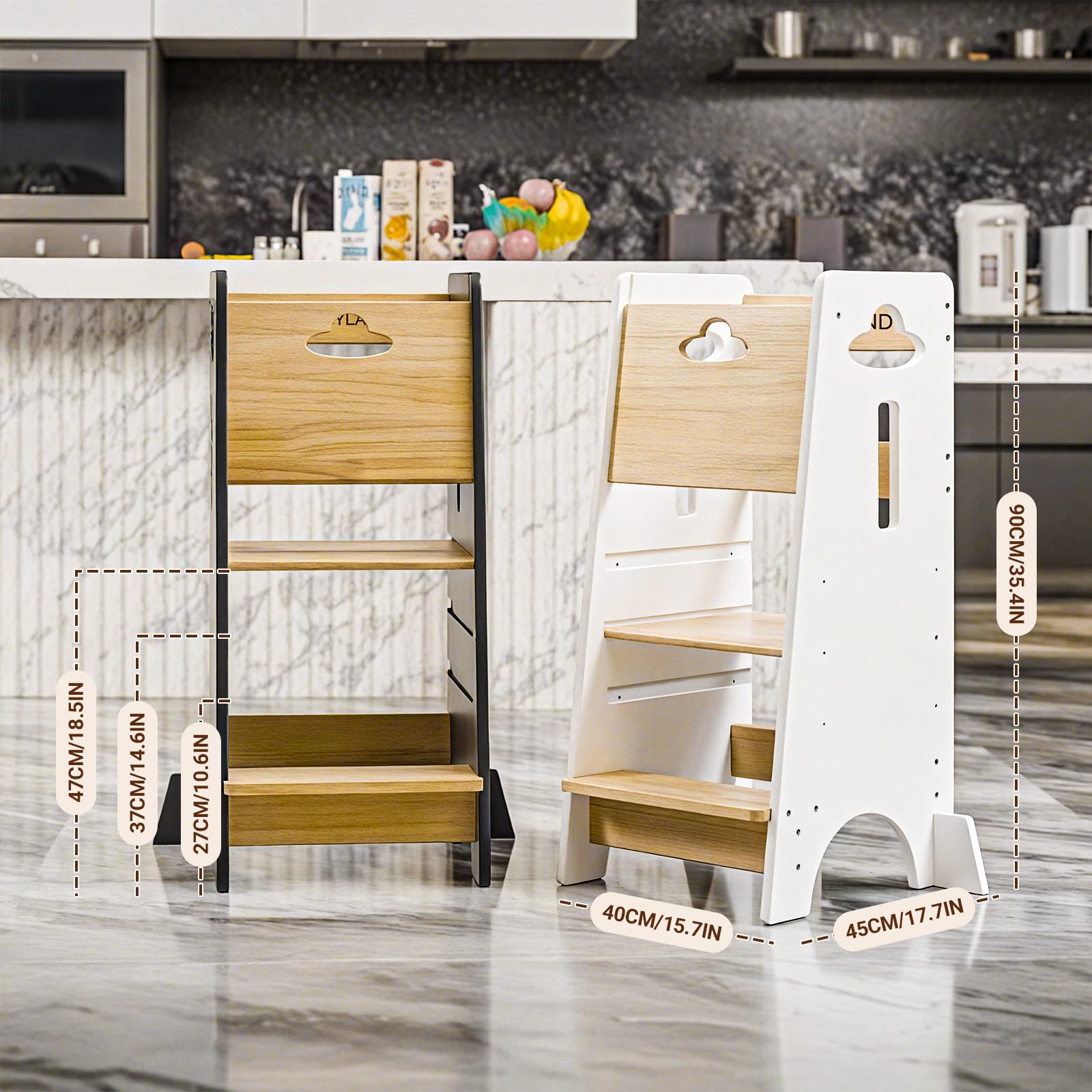 - Super Stable Toddler Kitchen Tower: Weighing approximately 21 lbs, this durable toddler stool is built with an extra-thick 0.7-inch (18mm) board for superior stability. Reinforced with additional support feet at the base, it stays steady and secure—safe enough for kids to climb, stand, and even jump on.