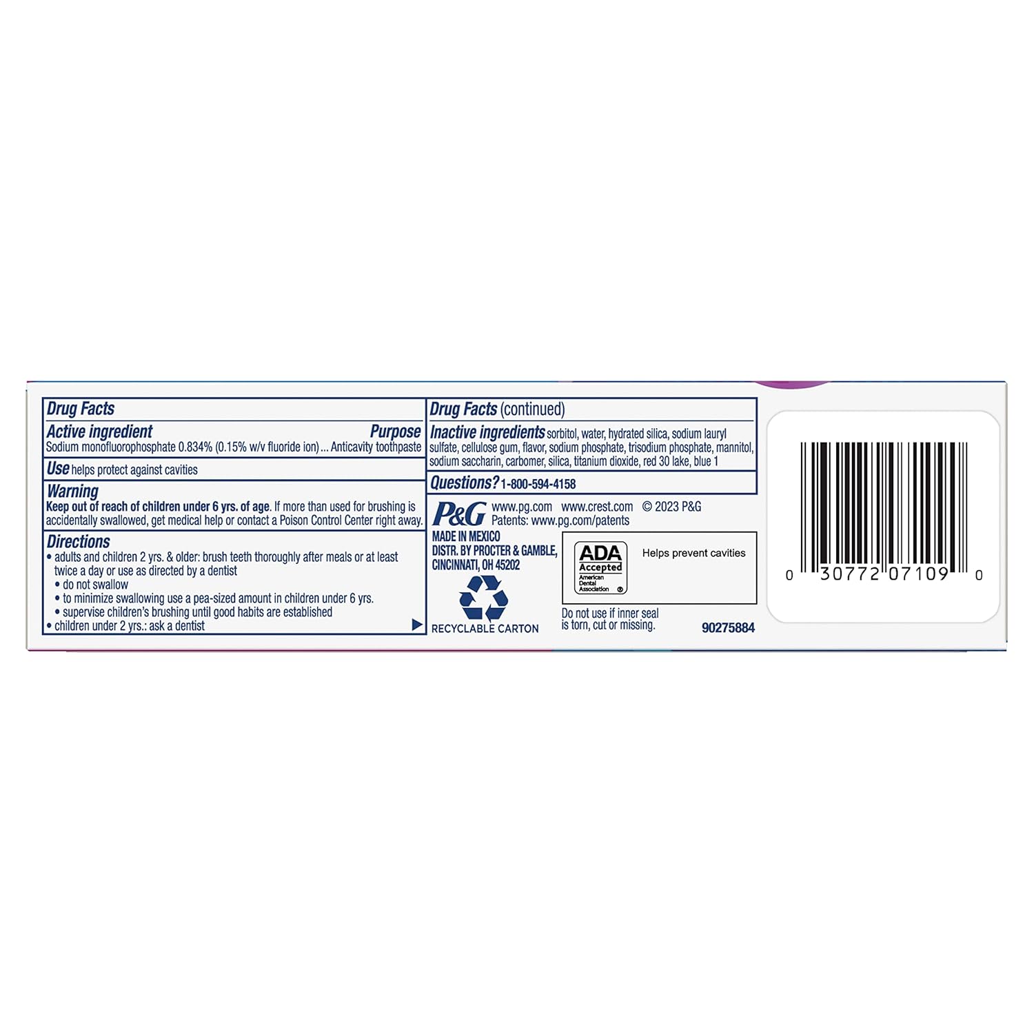 Make their smiles as bright as their futures with Crest Advanced Kid's Fluoride Toothpaste, the #1 dentist-recommended toothpaste for kids and a winning formula for memorable smiles. Crest Chameleon Toothpaste is an excellent addition to make your kids' brushing routine even more exciting. This toothpaste changes color from blue to pink after 2 minutes, helping them create healthier brushing habits at a young age by brushing for the dentist-recommended time. Kids need effective protection as they lose their baby teeth and their permanent teeth start to grow. Crest Advanced Kid's Toothpaste formula contains fluoride to fight cavities and promote a healthier smile for your kids. Bring fun and protection to their brushing regimen with this Crest color-changing toothpaste. Crest Advanced Kid's toothpaste helps to protect kids' teeth as they transition from toddler to adolescence, helping them create healthy habits and start brushing 2x longer, for a healthier oral care routine. Make their brushing routing even more fun with its yummy bubble gum flavor kids love. Discover a new color-changing regimen with the variety of products on the Crest and Oral-B Chameleon line and teach your kids fun and healthy habits with every brush. Do not use on children under age 3.