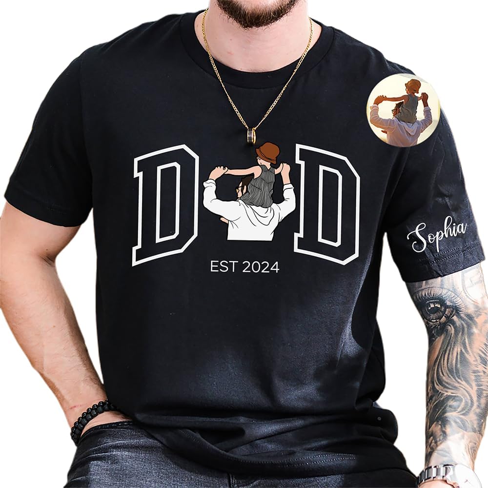 Custom Photo Shirt for Dad, Father's Day Tshirt, Personalized Daddy Portrait Shirt, Gifts Fathers Day for Papa Grandpa, Daddy Birthday Gifts, Gift for Husband, Customized Photo Hoodie