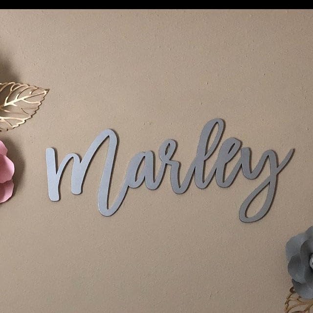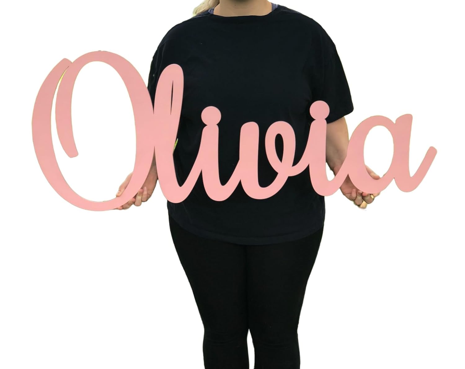 Add a personal touch to a nursery wall, or even use as a photo prop. Any word and name can be created including symbols. Hanging material not included as everyone uses these for different purposes. Your choice of 20+ fonts and colors.