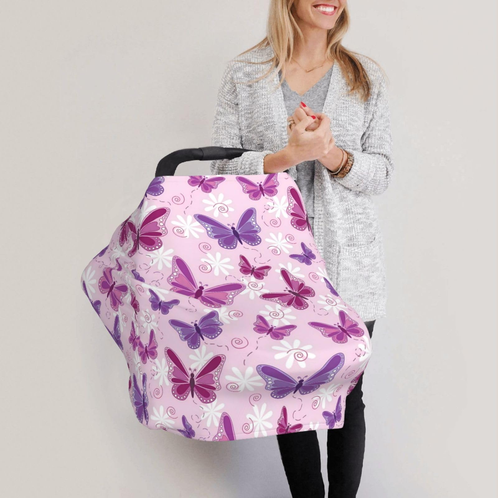 Cute Butterfly Baby Stuff Car Seat Covers Baby Multi-Use Car Seat Canopy Carrier Cover, Breathable Breastfeeding Cover Boys & Girls