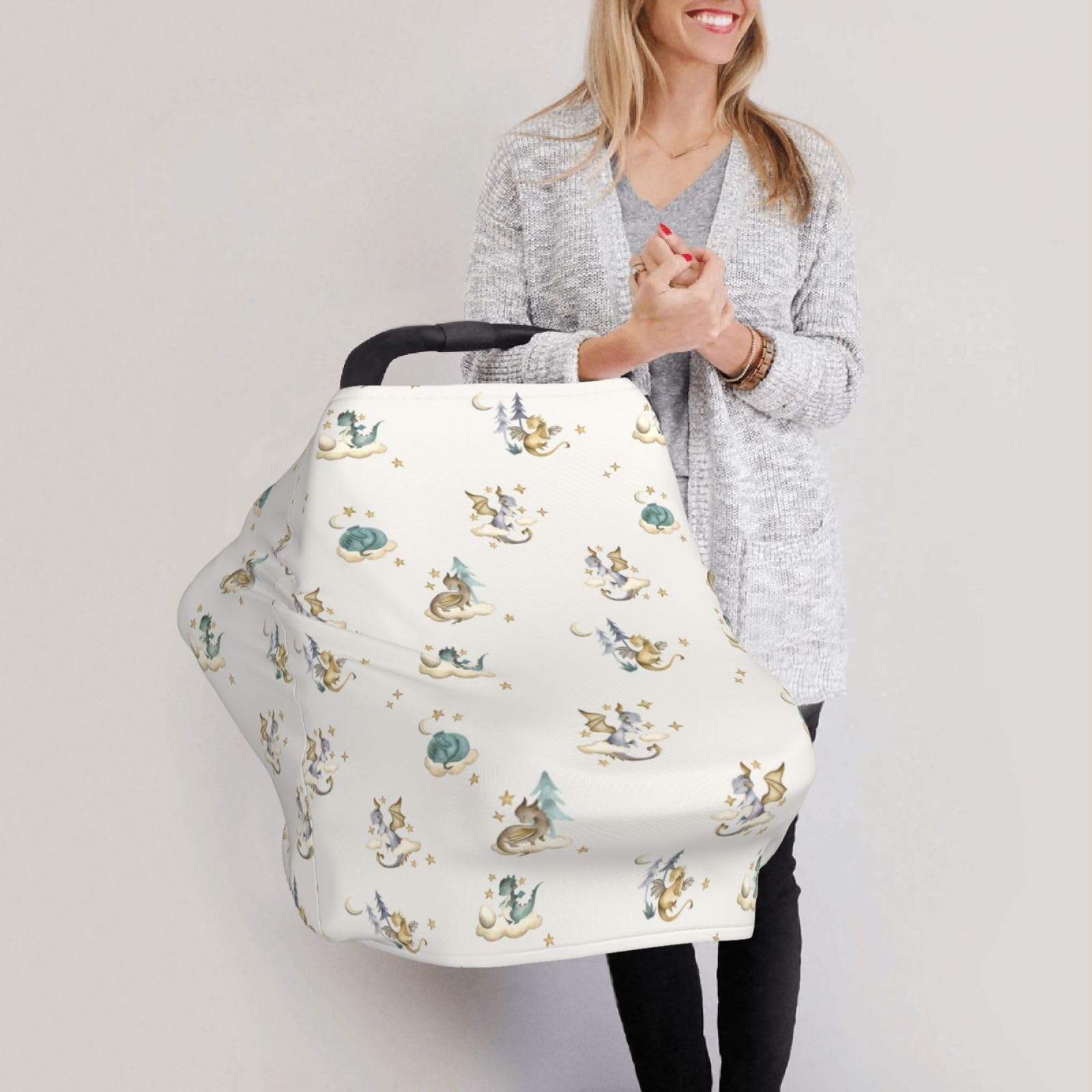 - MULTI FUNCTION: Car seat canopy is a baby essential that goes from canopy to nursing cover quickly. It can also be used as a breastfeeding cover, car seat canopies, baby car seat covers, high chair cover, shopping cart cover, feeding chair covers, strap sunshades or lounger cover. There are many more uses waiting for you to discover.