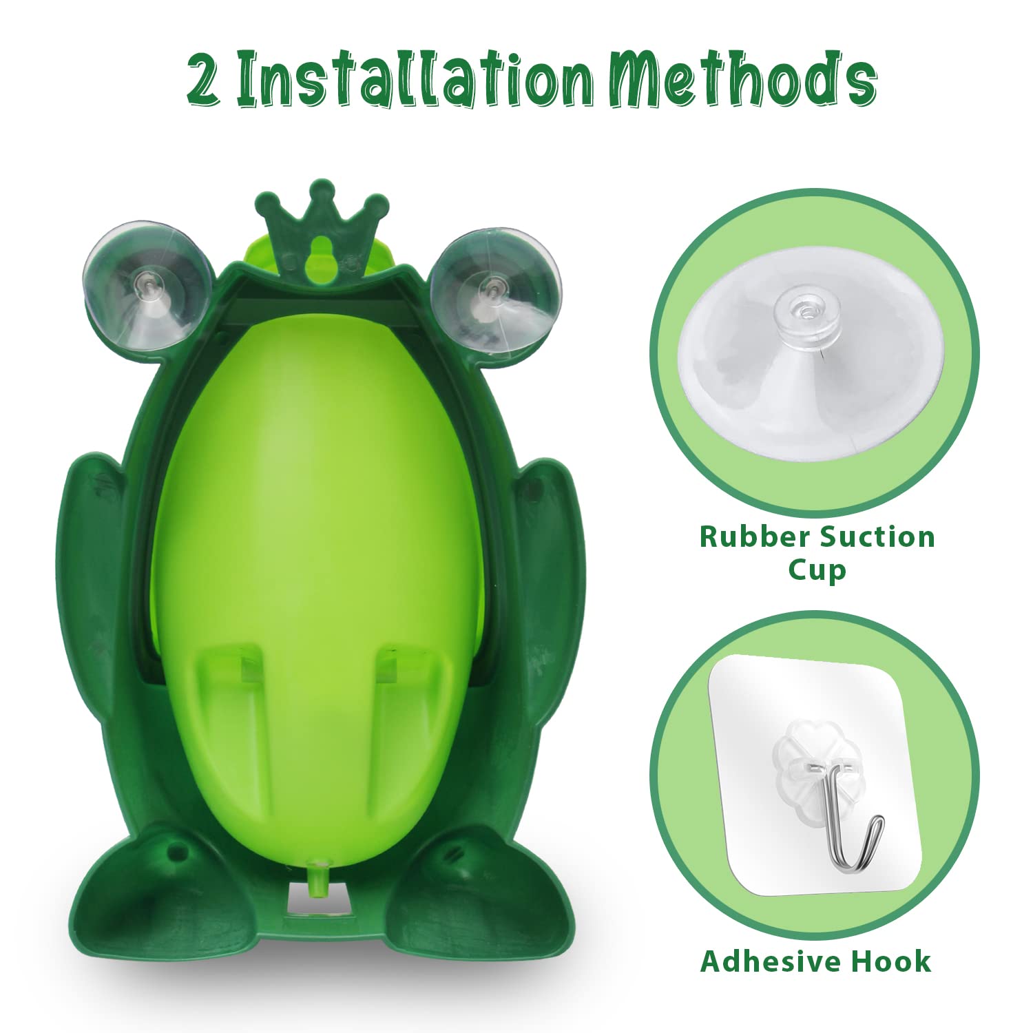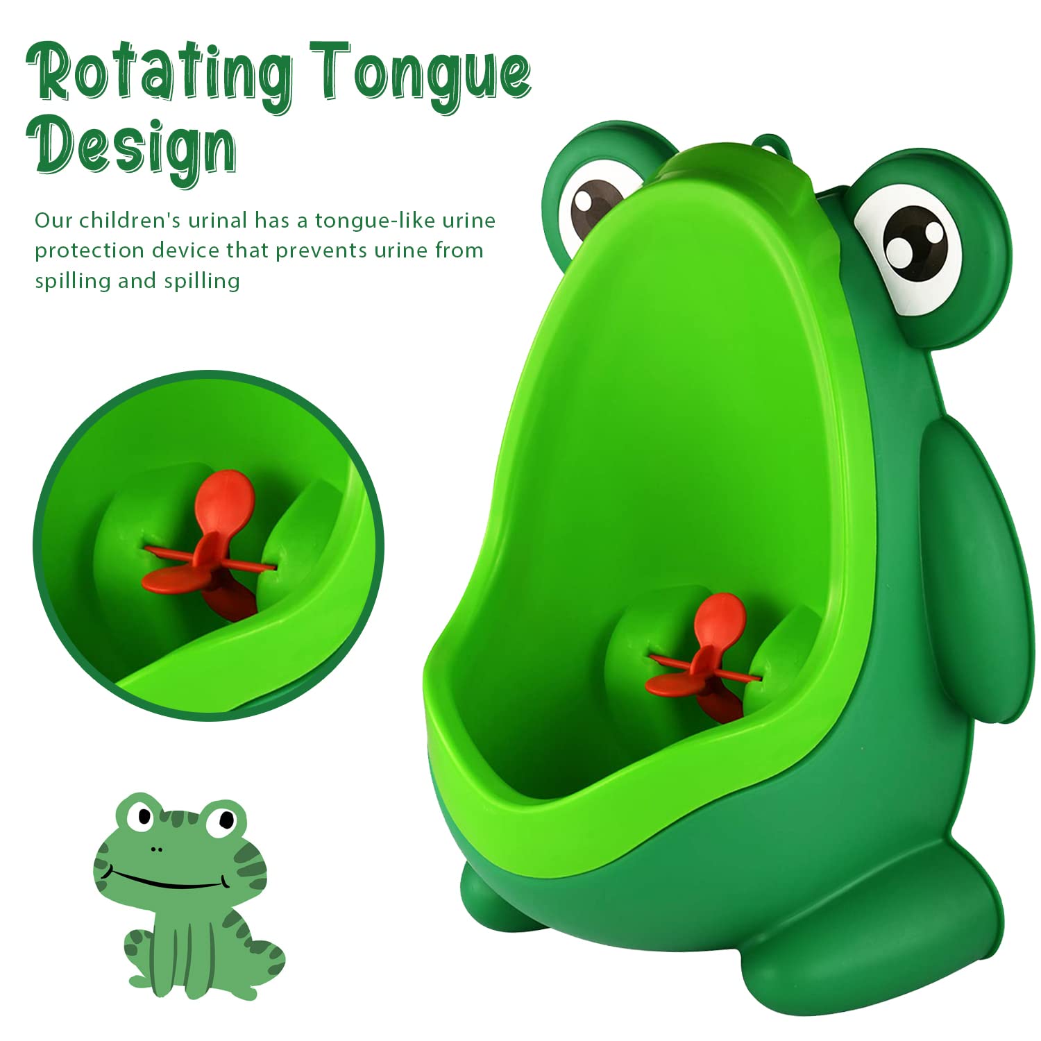 - Bright Colored Urinal Froggy Shape is Perfect for Little Boys.