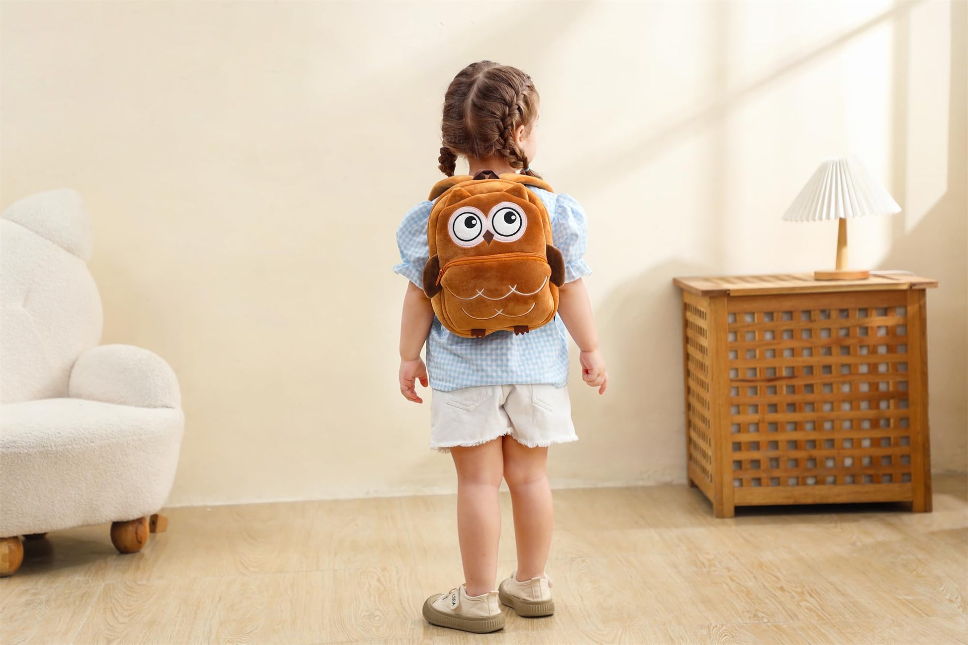 VASNOMX Cute Plush Toddler Backpacks Mini Brown Owl Backpack for Kids Real Li...