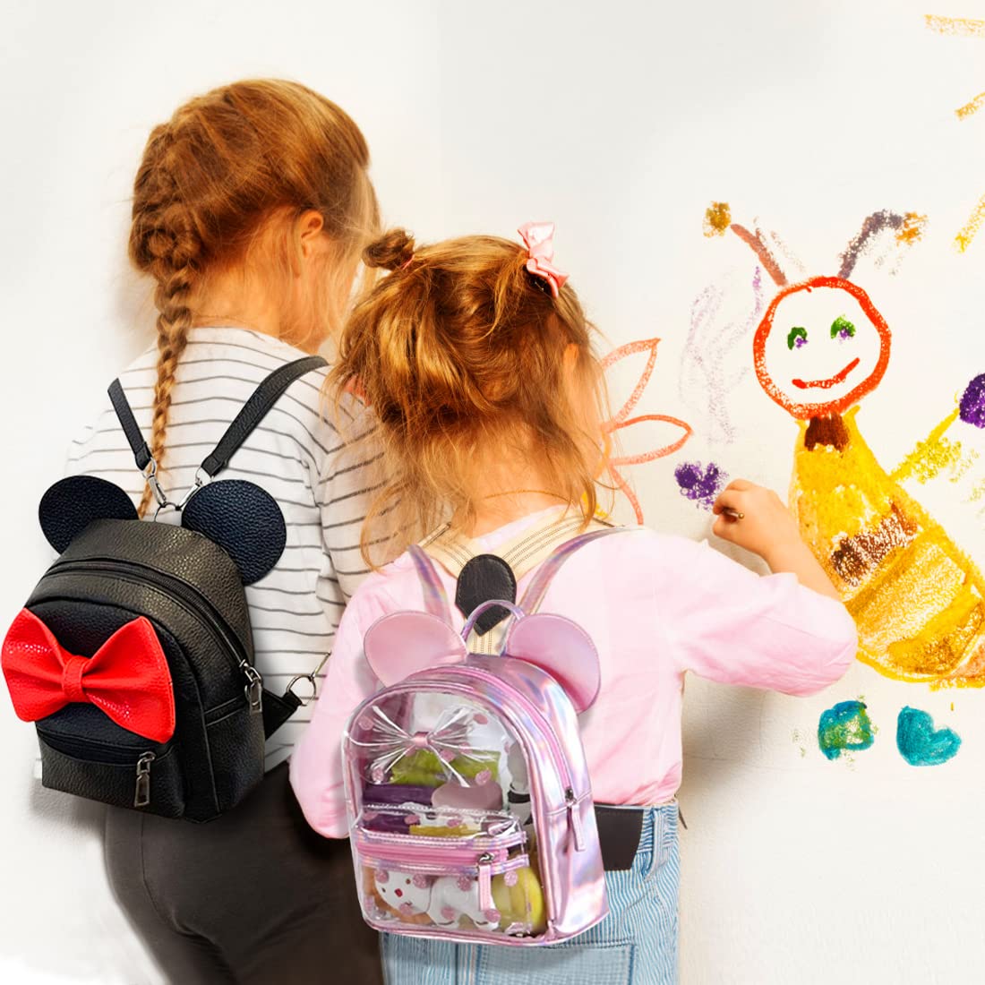 Cutest Toddler Polkadot Bow Mouse Ears Bag Mini Clear Fashion Shoulder Backpack for Teen Toddler Little Girls (clear)