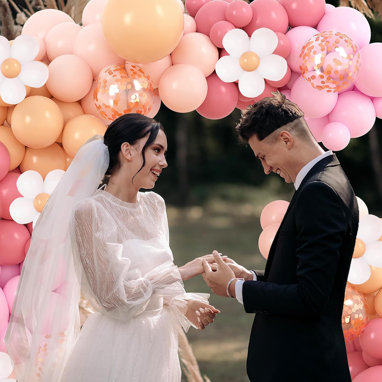 Daisy Balloon Garland Pink Blush Pastel Orange White Balloons with Flower Clips Rose Gold Confetti Balloon Arch Kit for Boho Daisy Baby Shower Party Decorations
