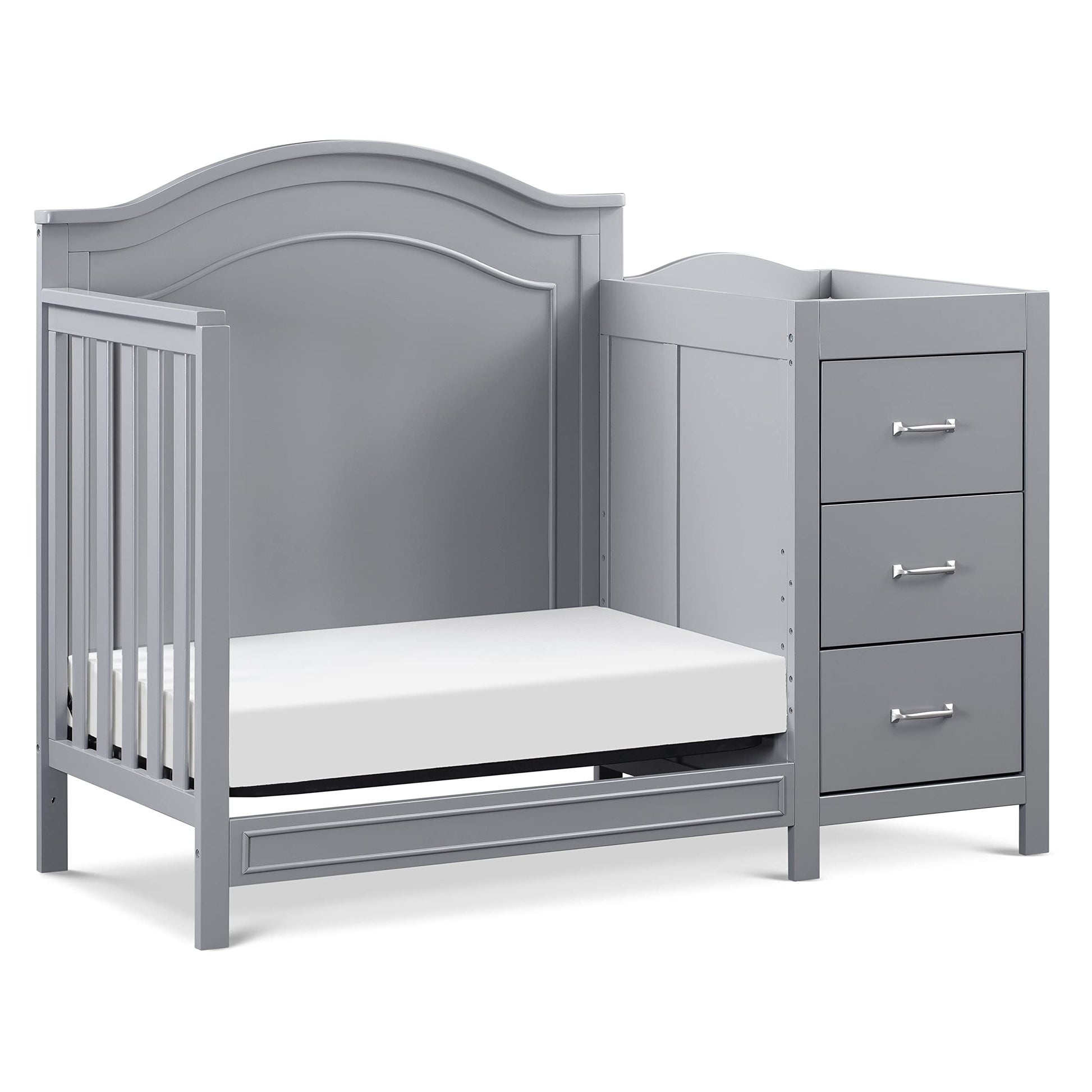 - 4-in-1 Convertible Crib that Grows with Your Baby: This mini crib converts to a sleeping crib, toddler bed, daybed, and twin-size bed. Includes a built-in changing table to store essentials. (Toddler kit #M20399 & twin kit #M12899 sold separately)