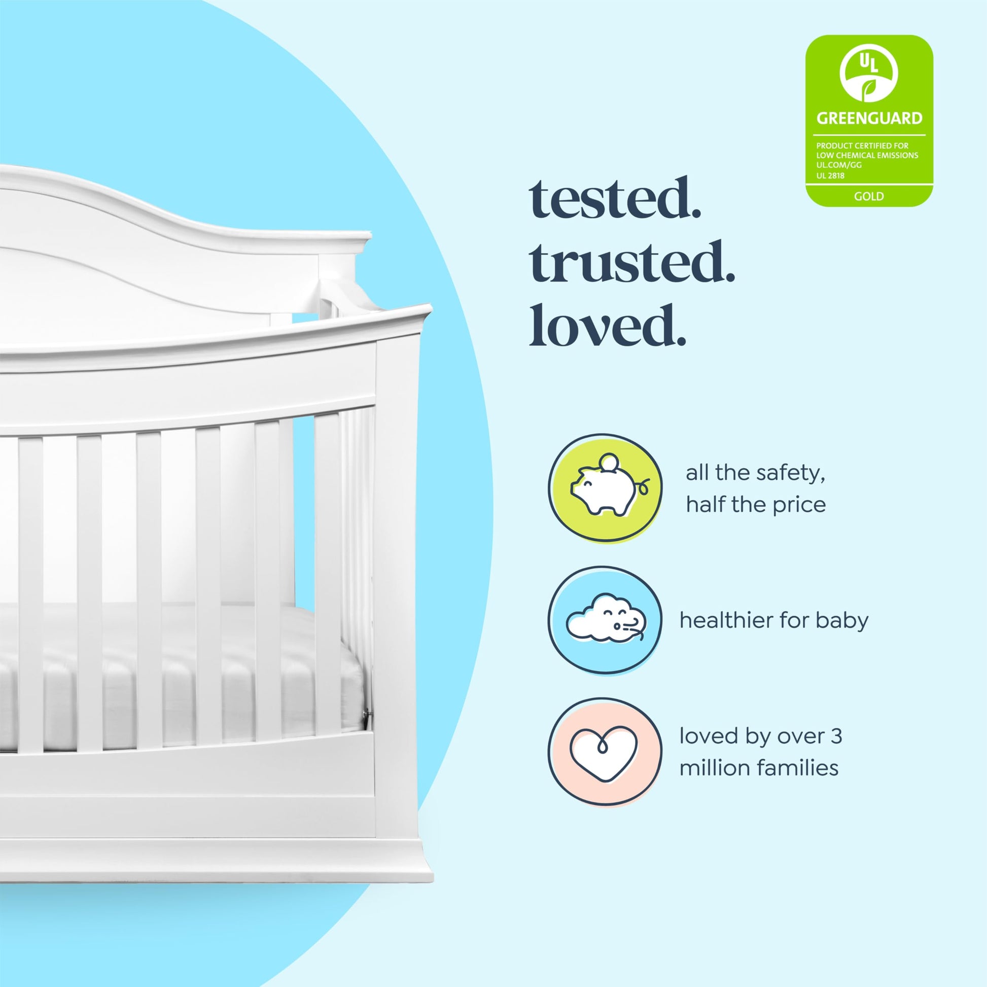 - GREENGUARD GOLD CERTIFIED: This product has undergone rigorous scientific testing for over 10,000 chemical emissions and VOCs It contributes to cleaner indoor air, creating a healthier environment for your baby to sleep, play, and grow