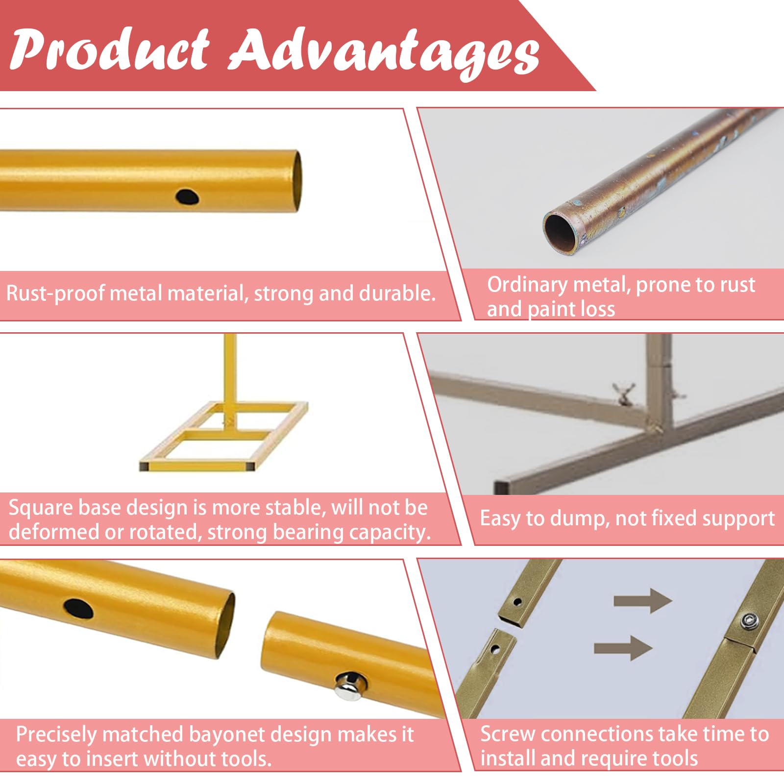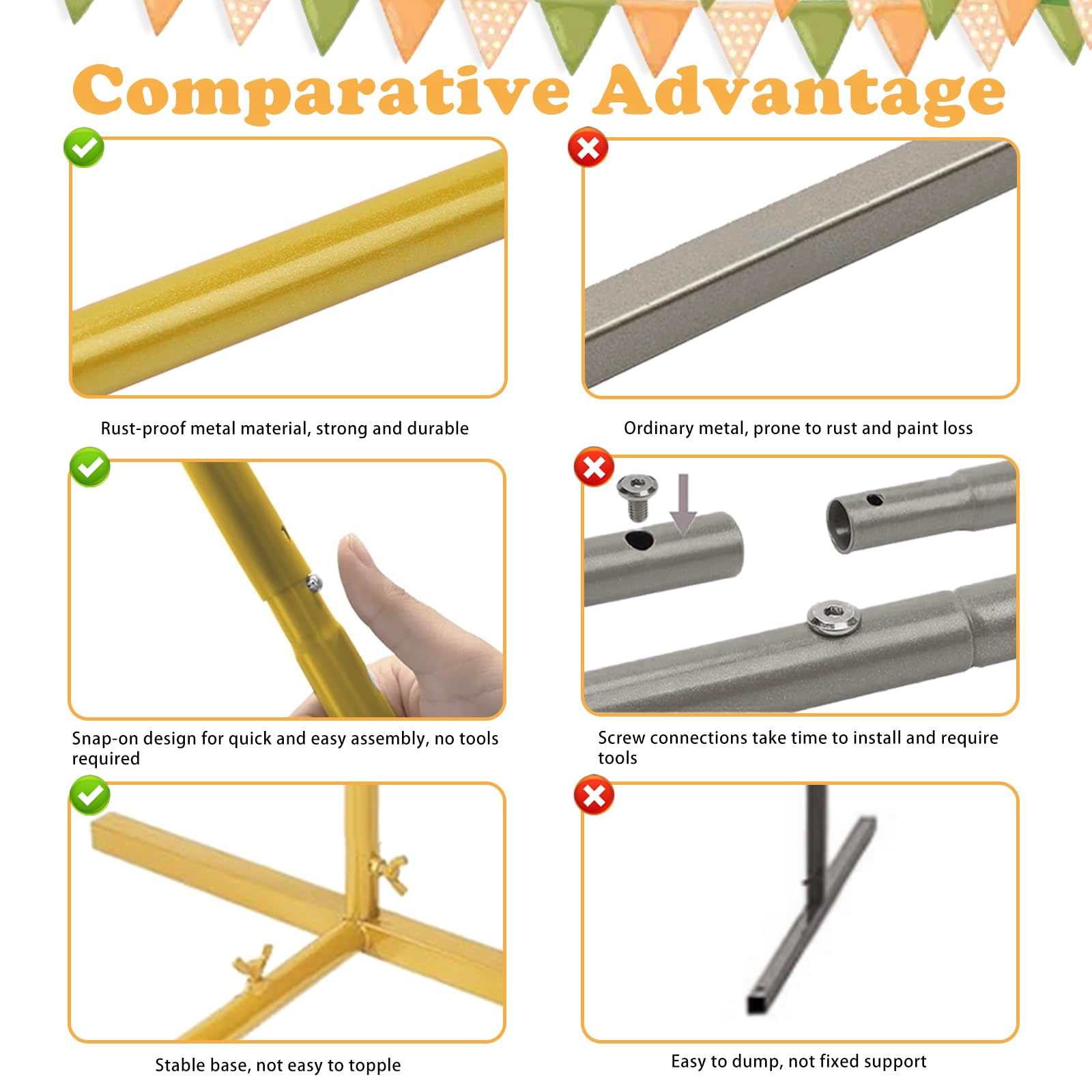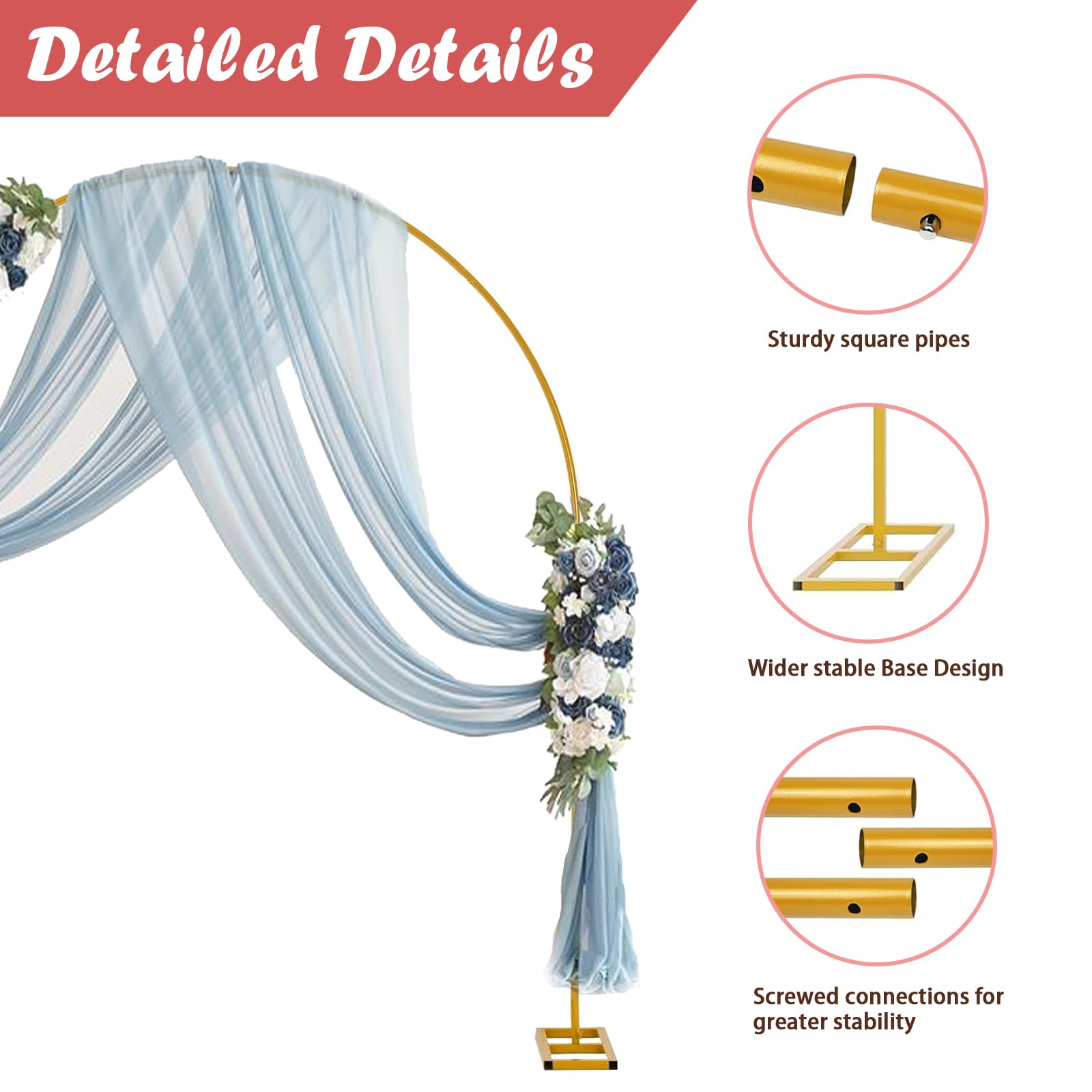 - Sturdy and Durable Arch Structure】Measuring 7.9 feet in height, this backdrop arch is built with 1.0 mm thick steel tubes, coated in gold for rust resistance. The screw-fastened connections provide enhanced stability, preventing slippage or jamming, and offer greater durability than traditional spring button connections