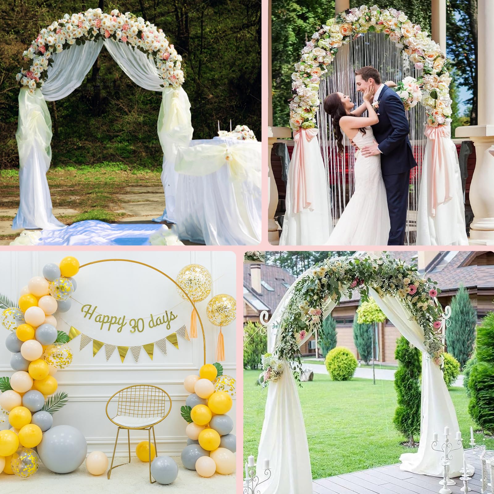 - 【Multi-Functional Design for Various Occasions】Decorate the round backdrop stand with balloons, flowers, gauze or green plants to add beauty. This metal arch backdrop stand is perfect for weddings, birthdays, grand openings, graduations, and seasonal celebrations. It’s easy to disassemble for versatile use, eco-friendly, and reusable, making it a cost-effective solution for multiple events