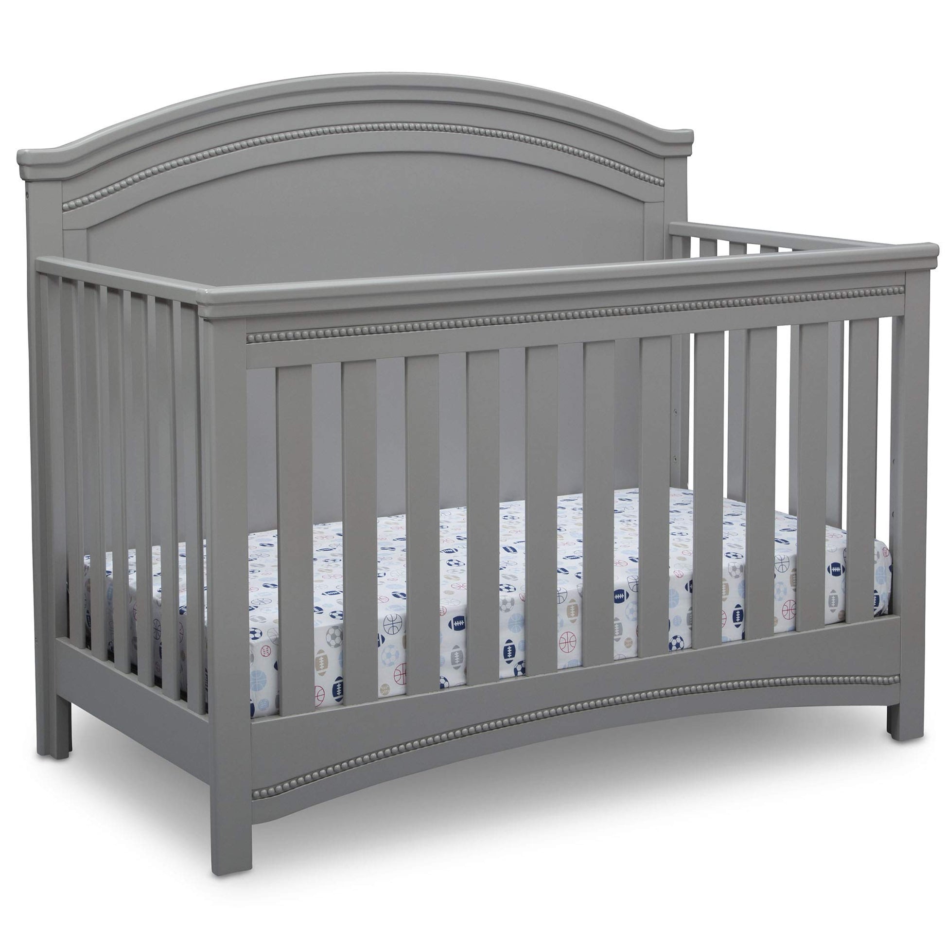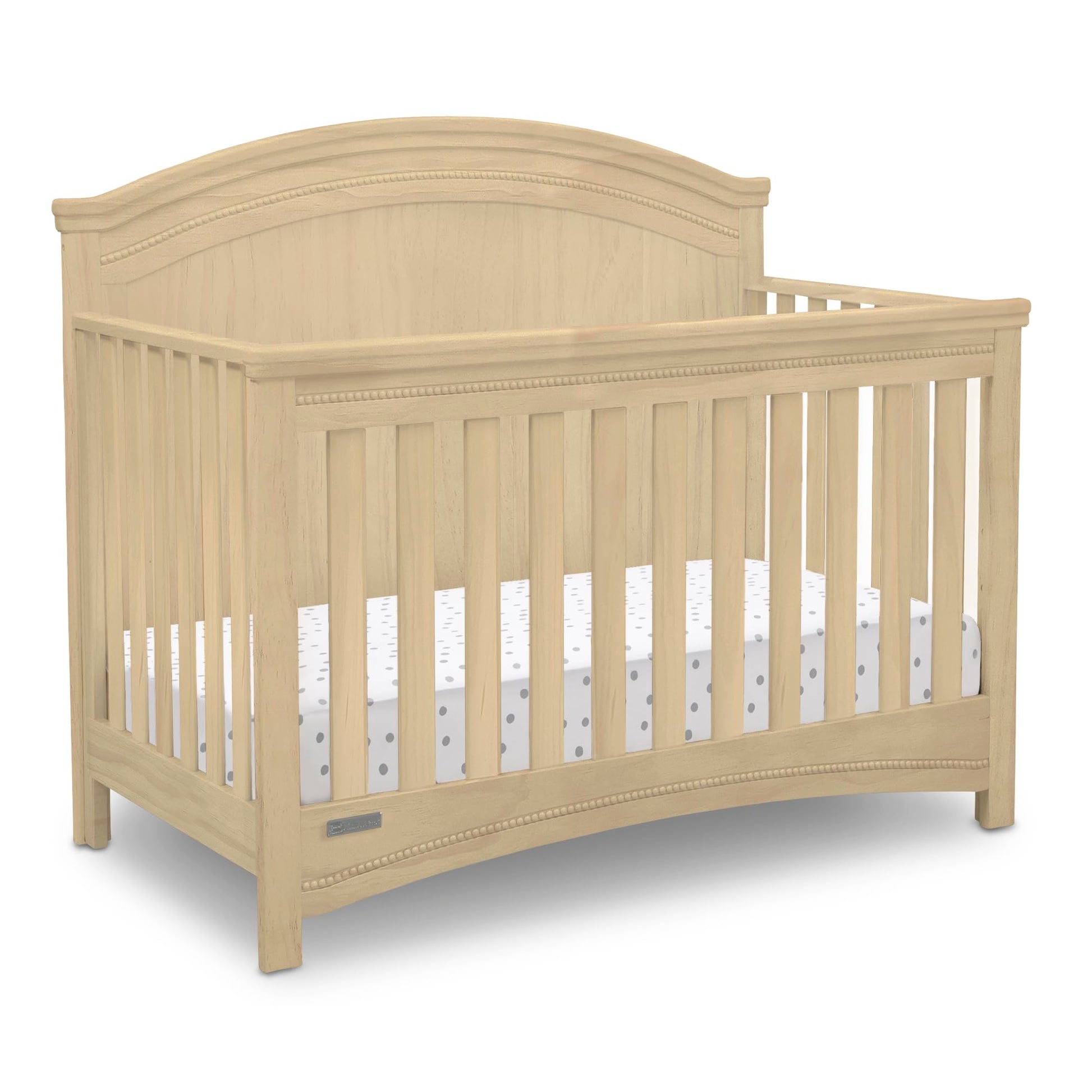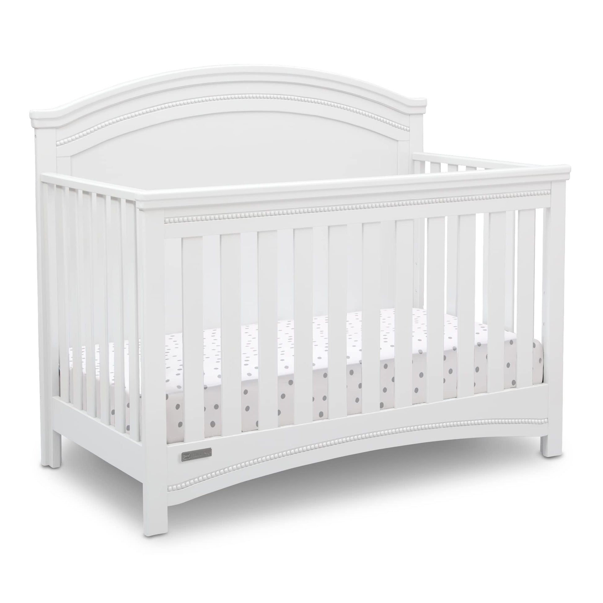 Nothing can compare to the enduring elegance of the Emma Convertible Crib N More from Simmons Kids. Classic architectural detailing, bead and crown molding, as well as a solid, bell-shaped headboard provide a sophisticated foundation that stands the test of time. An heirloom-quality piece, this crib easily grows alongside Baby with its three mattress heights that allow you to lower it as your child matures. Plus, once your little one has outgrown the need for a crib, it converts into a toddler bed, daybed, and then finally, a full size bed (Daybed Rail included; Toddler Guardrail and Full Size Crib Conversion rails sold separately). Pair it with the Emma 4 Drawer Dresser with Changing Top (sold separately) to complete your nursery. Producing the finest furniture for over 80 years, Simmons Kids has always been committed to the safety of every family. All Simmons Kids cribs are JPMA certified, and are tested above and beyond industry standards.