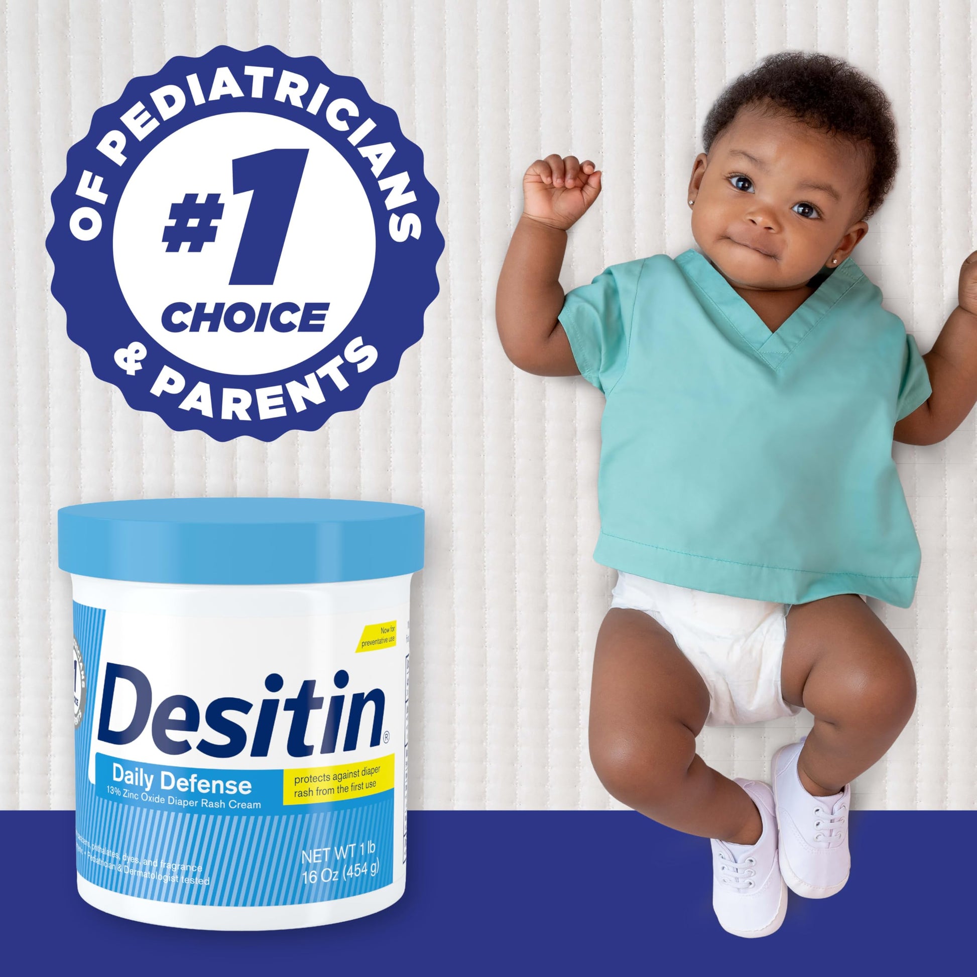 - 16-ounce tub of Desitin Daily Defense Baby Diaper Rash Healing Cream works from the first use to help soothe, treat and prevent diaper rash