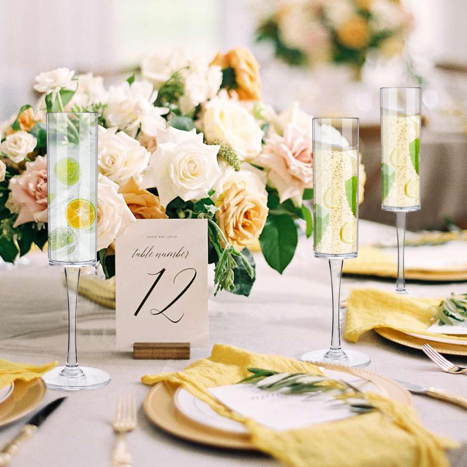 - Suitable Size: These wedding champagne flutes have an opening diameter of 1.81 inches, a height of 9.69 inches, with a transparent stem that measures 4.17 inches, providing a comfortable grip. The base diameter is 2.87 inches, featuring a wider design that allows you to conveniently place the champagne flutes glasses on a bar, table, or tray. The 6oz capacity is suitable for the preferences of most guests