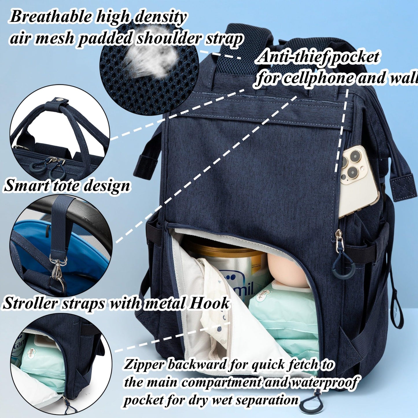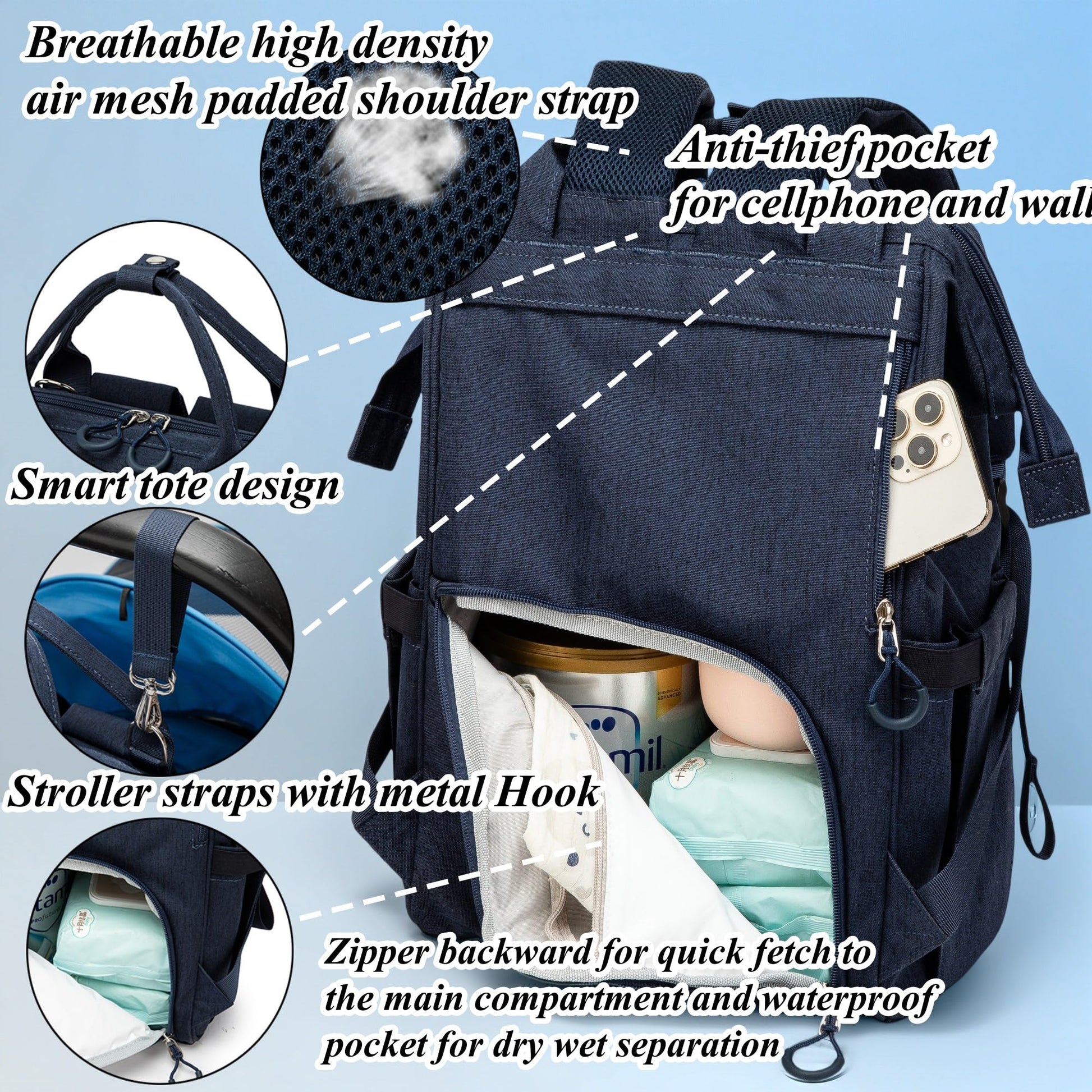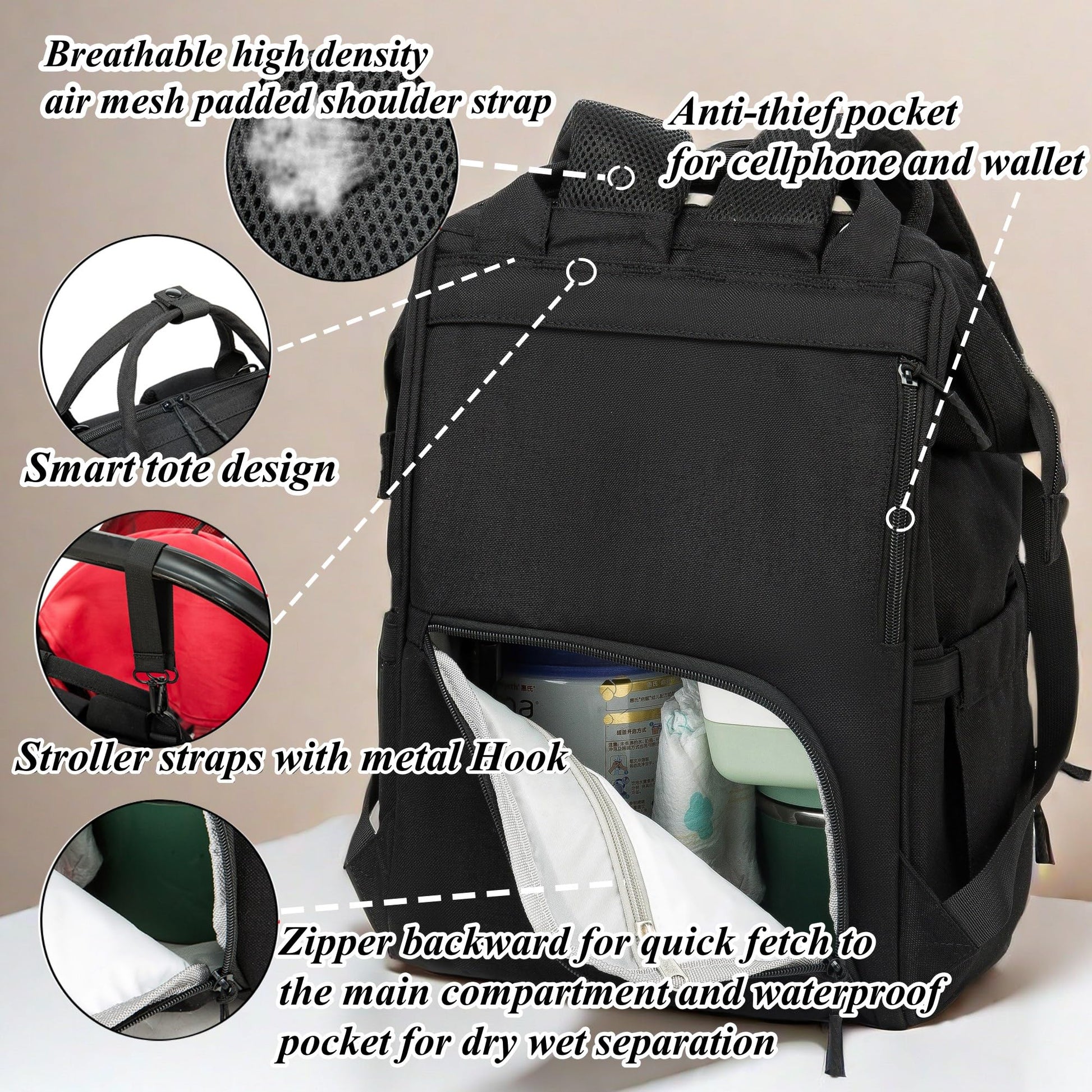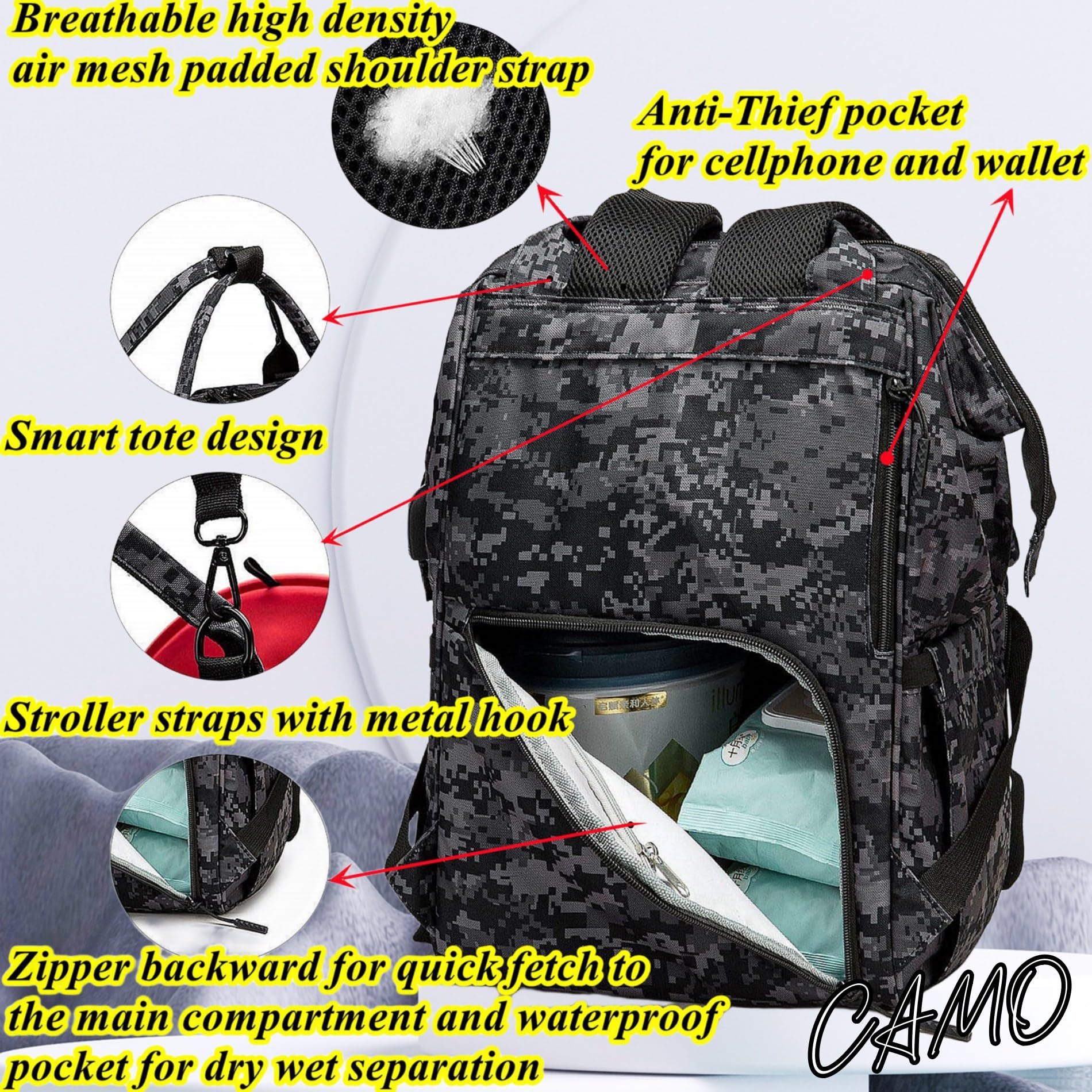 - ⭐Large Capacity&Practical:Diaper Bag with 14 Multifunctional Pockets Include 3 Insulated Pockets,2 Waterproof Pockets,2 Elastic Easy-taking Pockets,1 back Anti-theft pocket etc.,Spacious Enough to Hold Essentials and still Perfectly Organized and Compact