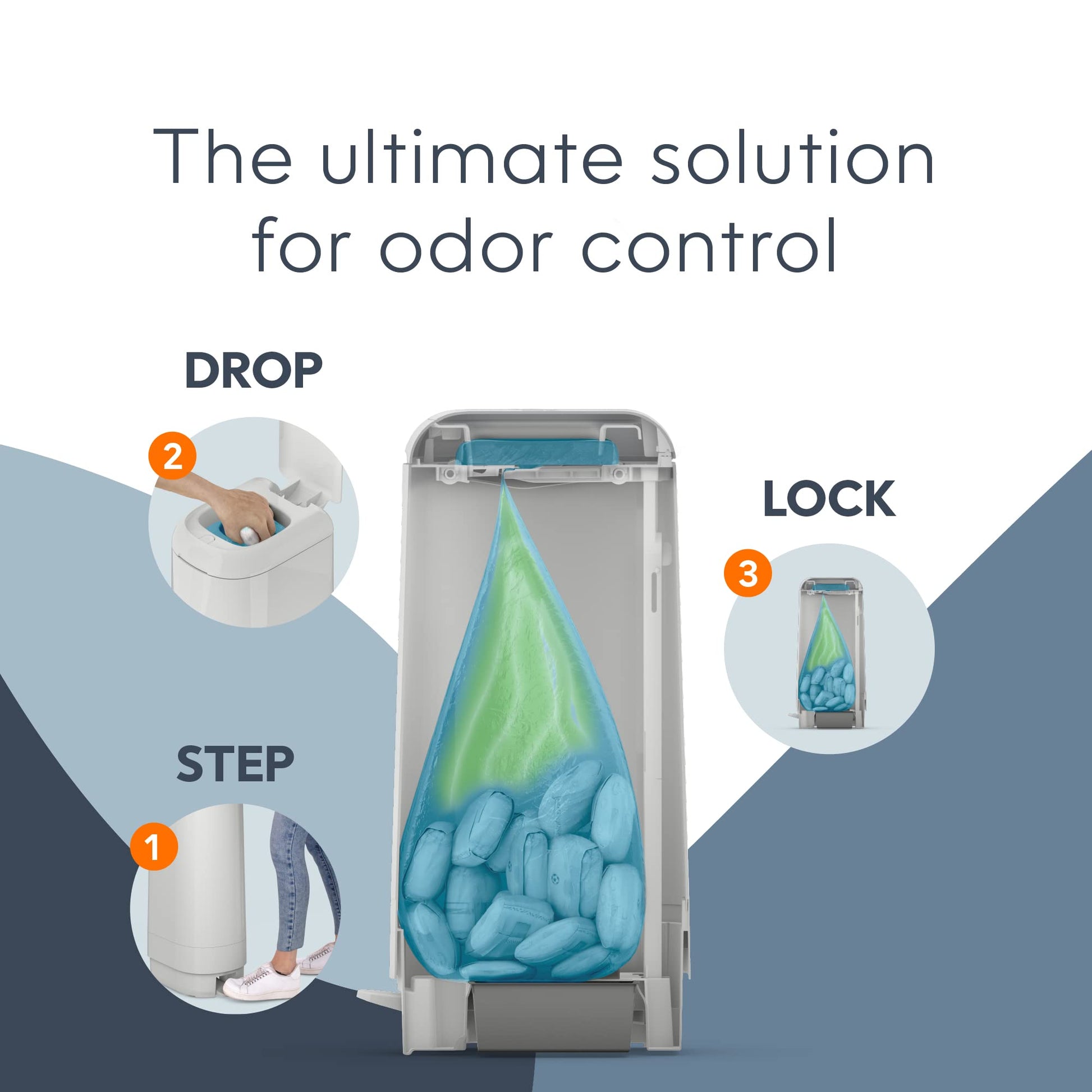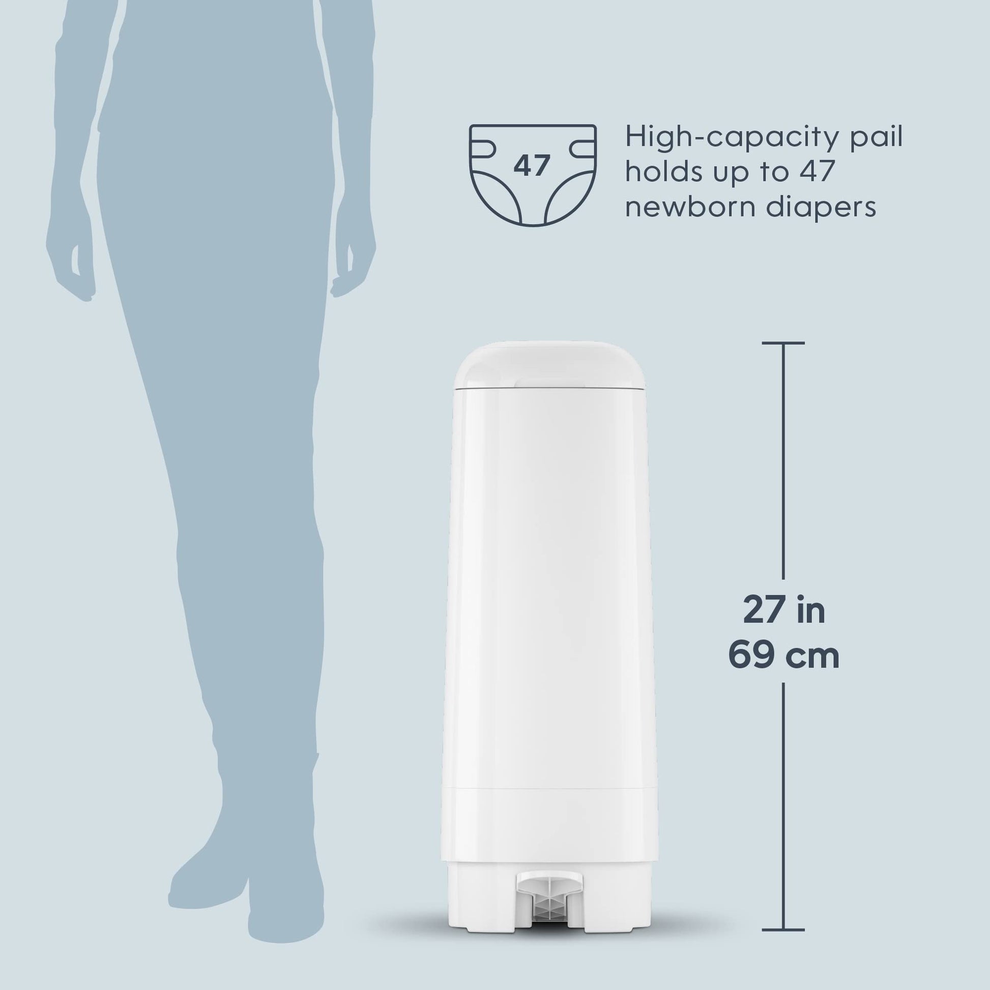 - HANDS-FREE OPERATION: The foot pedal allows easy hands-free operation without bending. The wide disposal opening and capacity of up to 47 newborn diapers make our pail extra convenient.