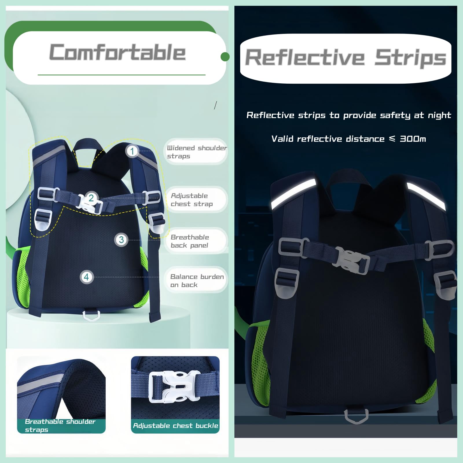 Anti-lost Preschool Boys Dinosaur Backpack with Reflective Strips