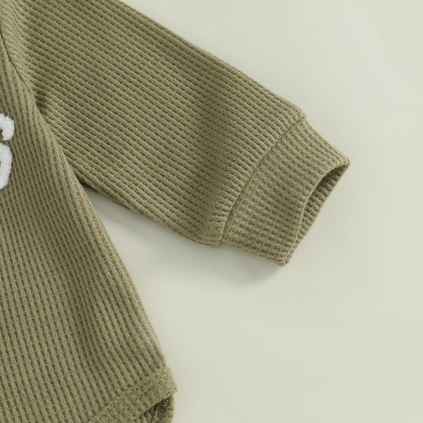 Douhoow Baby Boy Clothes Letters Embroidered Baby Sweatshirt Romper Waffle Pants Set Infant Boy Fall Winter Outfits