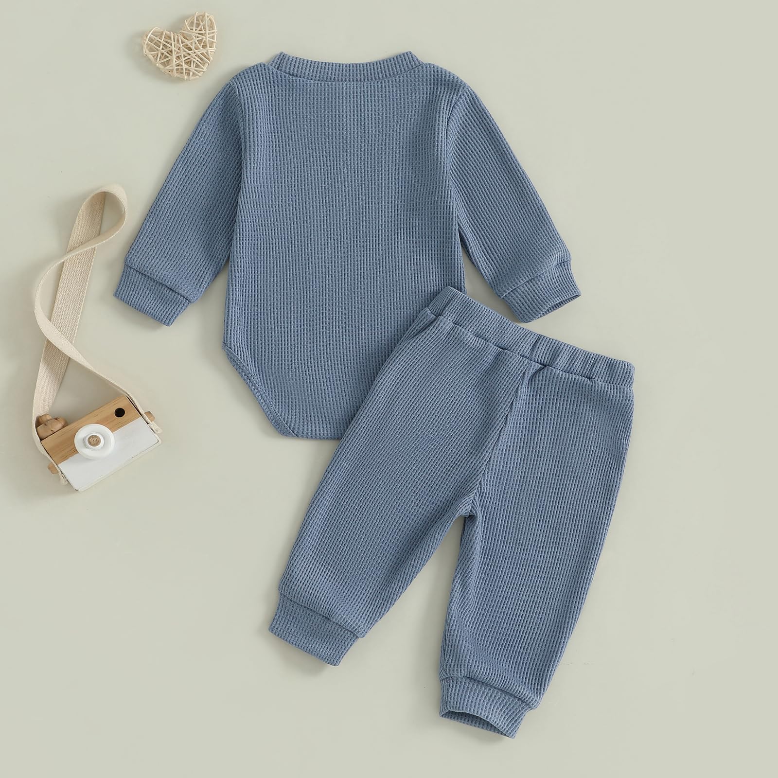 1 * Baby Sweatshirt Romper + 1 * Baby Waffle Pants