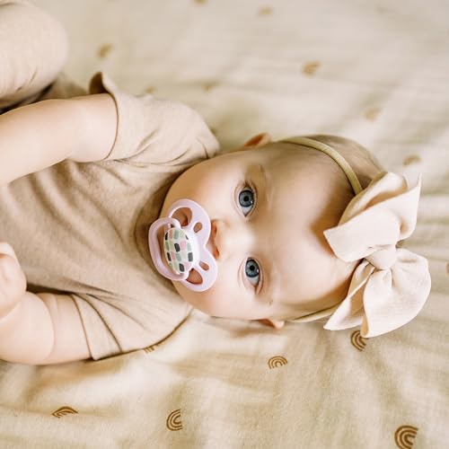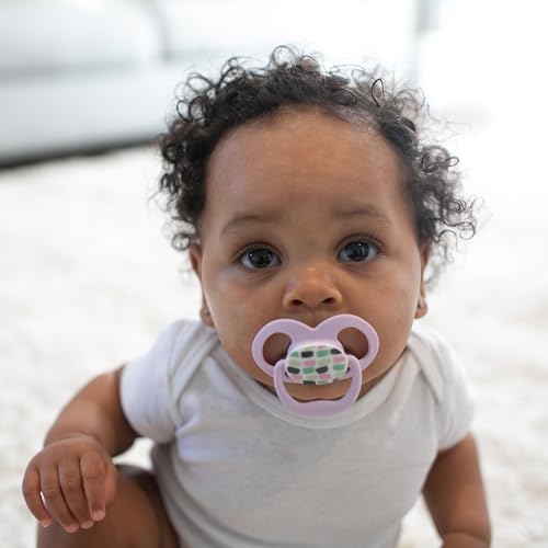 Dr. Brown's Advantage Glow-in-the-Dark Baby Pacifier, Fully Symmetrical Soother with Soft Silicone Bulb, Scooter Squirrel-Purple Nature, 6-18m, BPA Free, 4 Pack