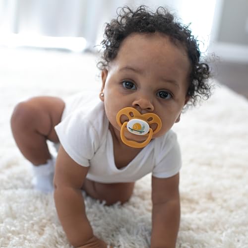 Dr. Brown's Advantage Pacifier is designed with baby's acceptance in mind. The Advantage Pacifier is a fully symmetrical soother, with a reversible bulb that can be placed in baby's mouth in either direction. The 100% silicone bulb is soft yet sturdy with a round shape that satisfies baby's suckling reflex. A unique open shield design reduces irritation by providing plenty of air for baby's sensitive skin to breathe. Plus, the fun design is glow-in-the-dark making it easy to find in the dark for nighttime soothing. Advantage Pacifiers come in two stages as baby grows – 0-6m features a smaller bulb and shield for newborns. As baby grows, they can move up to the 6-18m stage, a slightly larger version of the same soothing design. Taste-free, odor-free, and BPA-free. Dishwasher (top rack) and sterilizer safe.