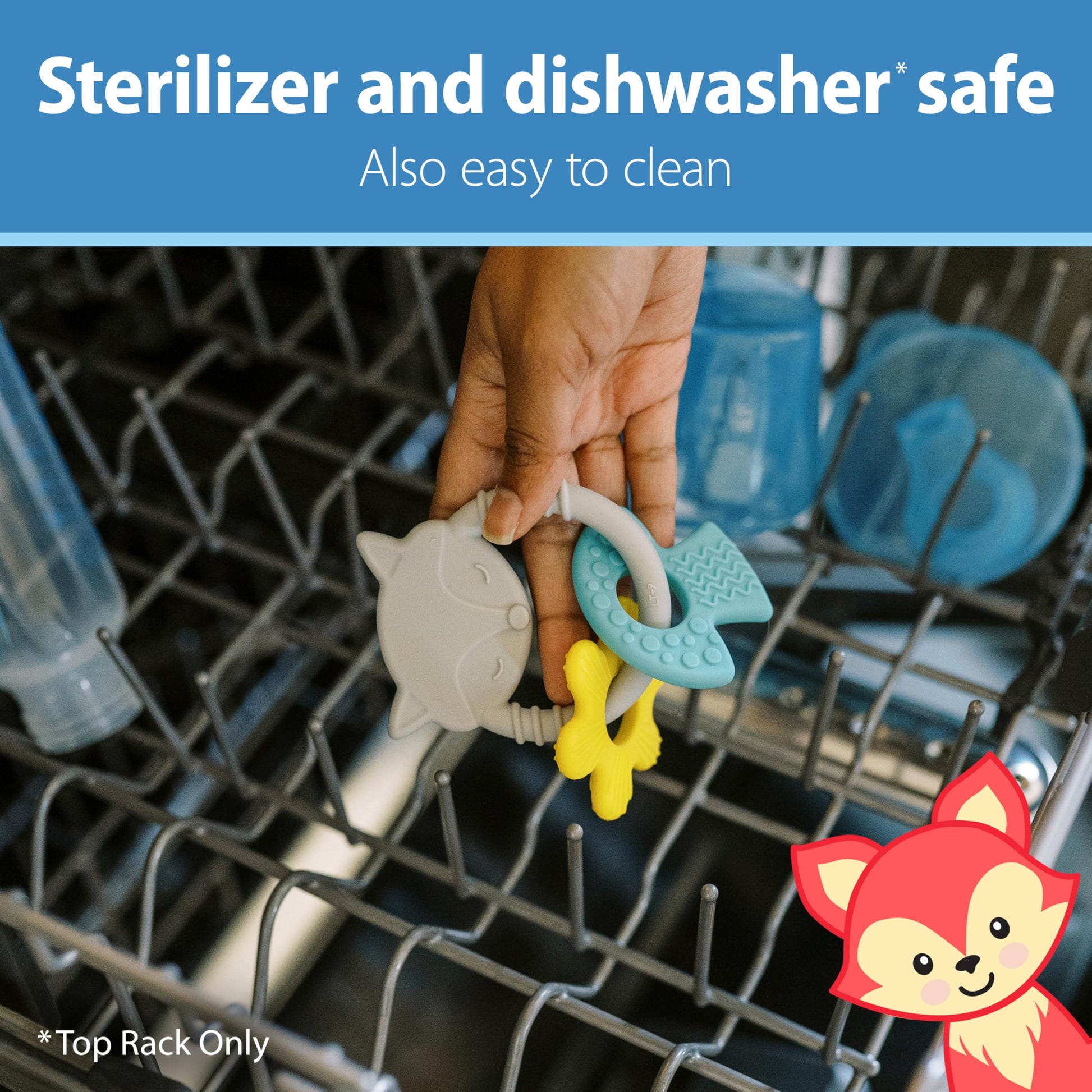 - EASY GRIP. This refrigerator-safe water teether features solid leaves designed for little hands to comfortably hold even when cold.