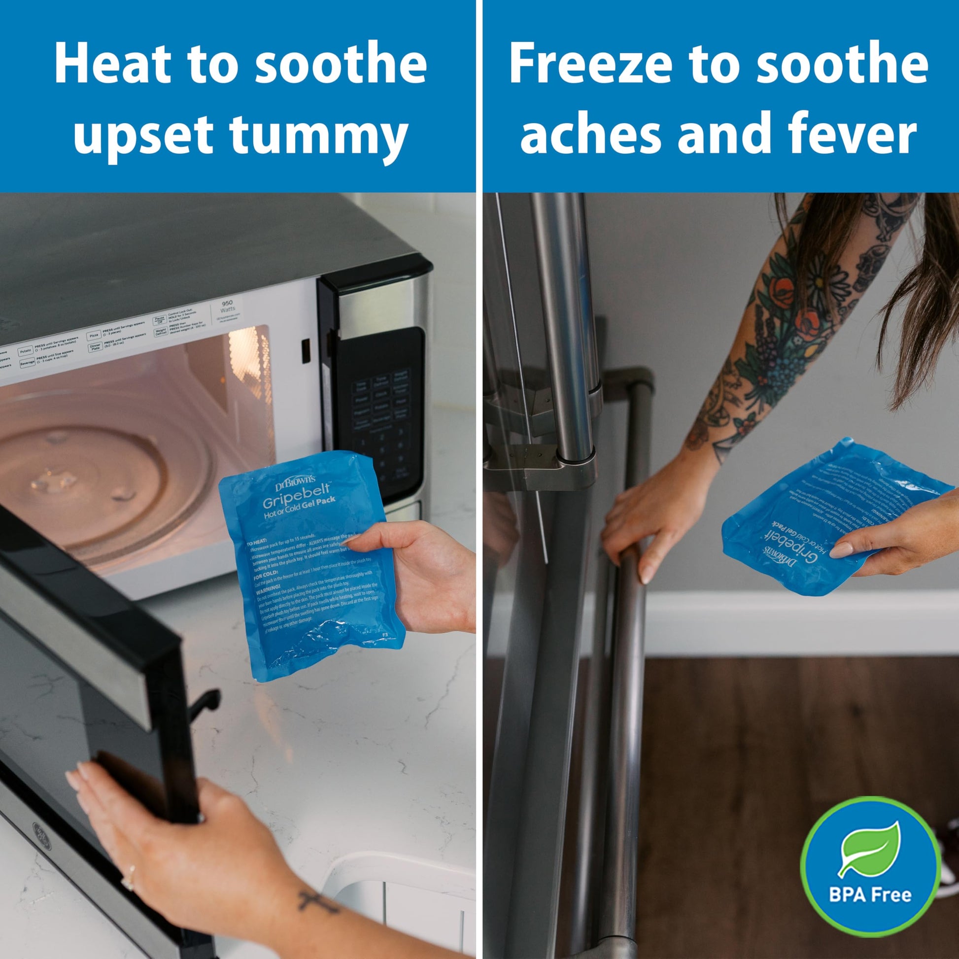 - QUICK AND CONVENIENT. The Gripebelt comes with a microwaveable hot pack and is easy to assemble. Simply warm the included clay pack in the microwave for 10 seconds, insert the warmed pack into the belt, and secure the adjustable belt to gently compress baby’s belly.