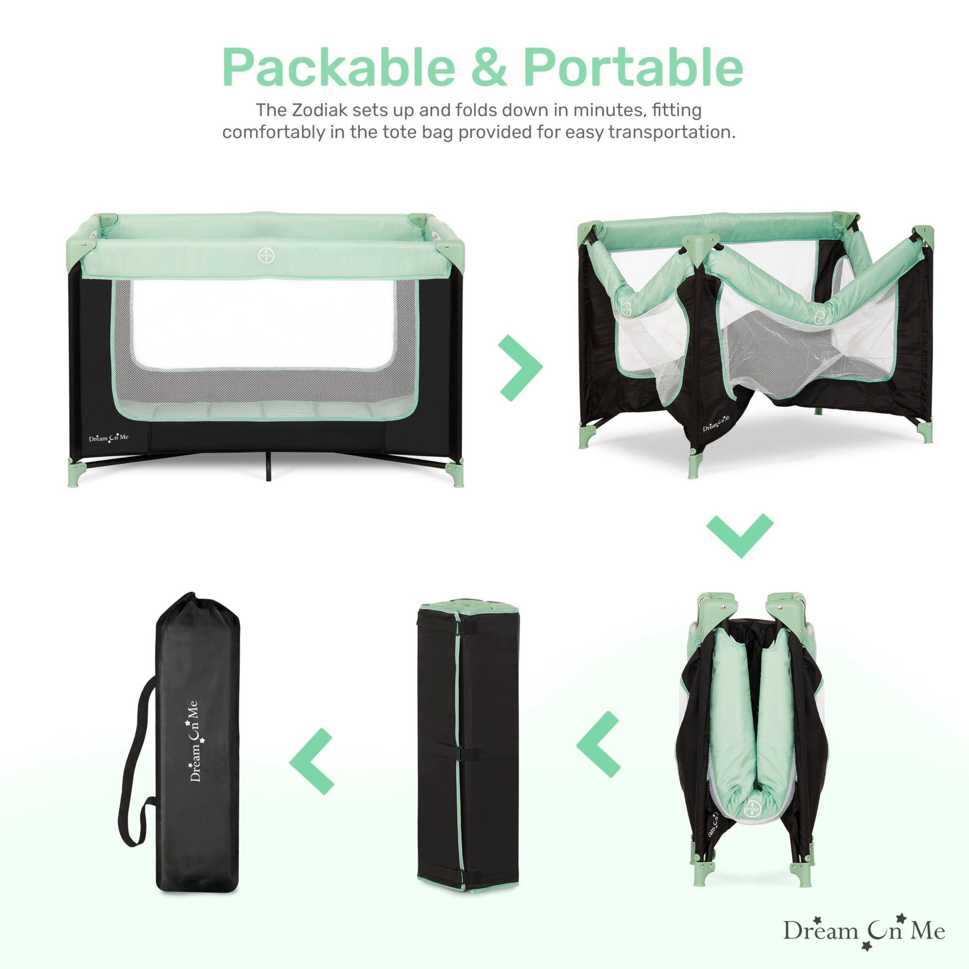 - LIGHT & MOBILE: The Zodiak Portable Playard has a lightweight aluminium frame that allow easy mobility. Set-up is quick and easy and it folds & stores compactly in the tote bag provided, making it perfect for vacationing.
