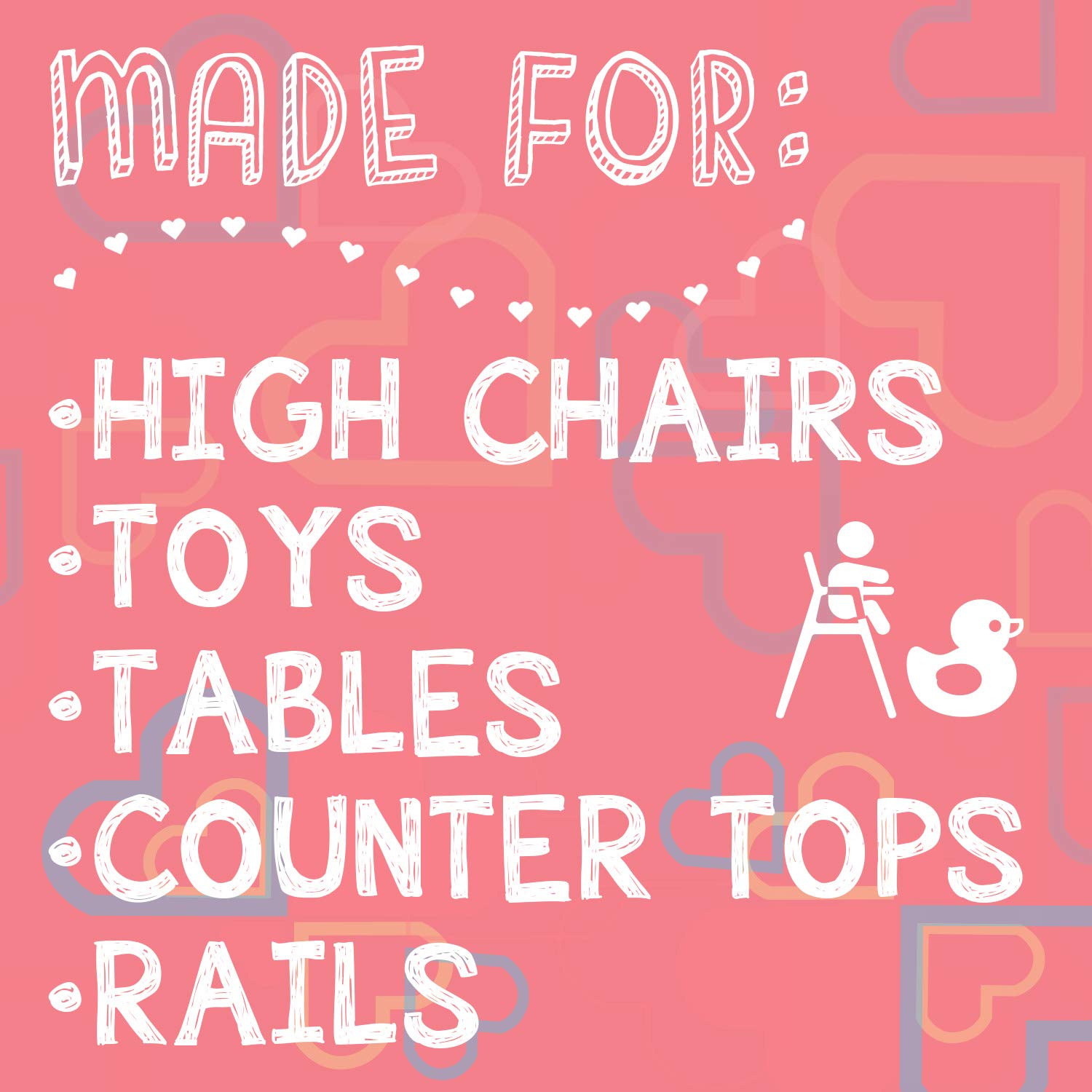 - Ideal for high chairs, toys, tables, crib rails, glass and more