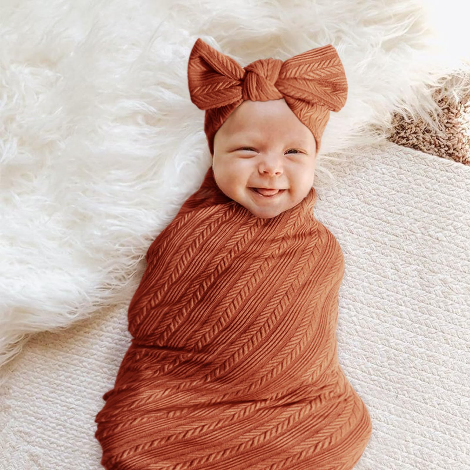 - 💝【Practical and Fashionable Design】- This comfortable newborn swaddle set is designed with a textured knit to make it more comfortable for your baby to wear without slipping. Wheat ear design is the trend this year! Our baby blanket has no zippers, no Velcro or snaps to protect your baby from any potential risks, no danger to your small angel.