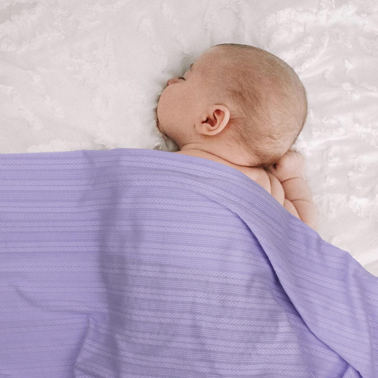 Our newborn receiving blankets whose sizes are 31.5inch/ 80cm* 31.5inch/ 80cm are large enough to wrap babies more easily and securely from shoulder to foot, preventing newborn babies from startling themselves awake with random arm movements, recreating the security and comfort of the womb.