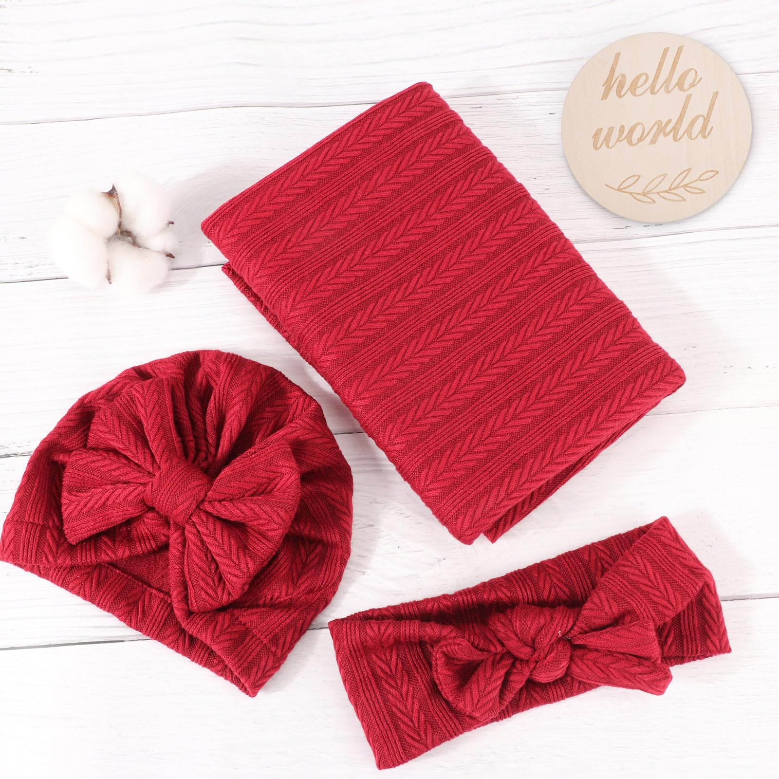 - 💝【Soft Fabric】- This baby blanket and headband hat set are made of super soft, stretchy and comfortable fabric. Warm and comfortable for baby's delicate skin. They contain no any harmful chemicals and are gentle on even the most sensitive skin.