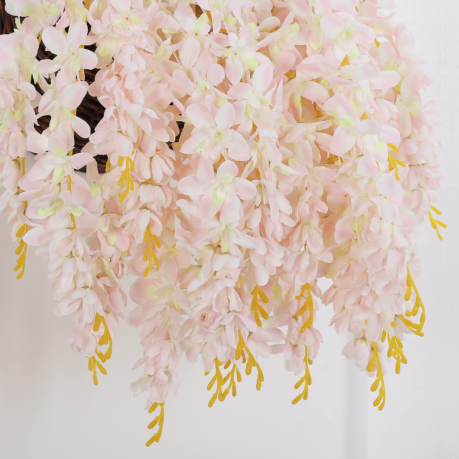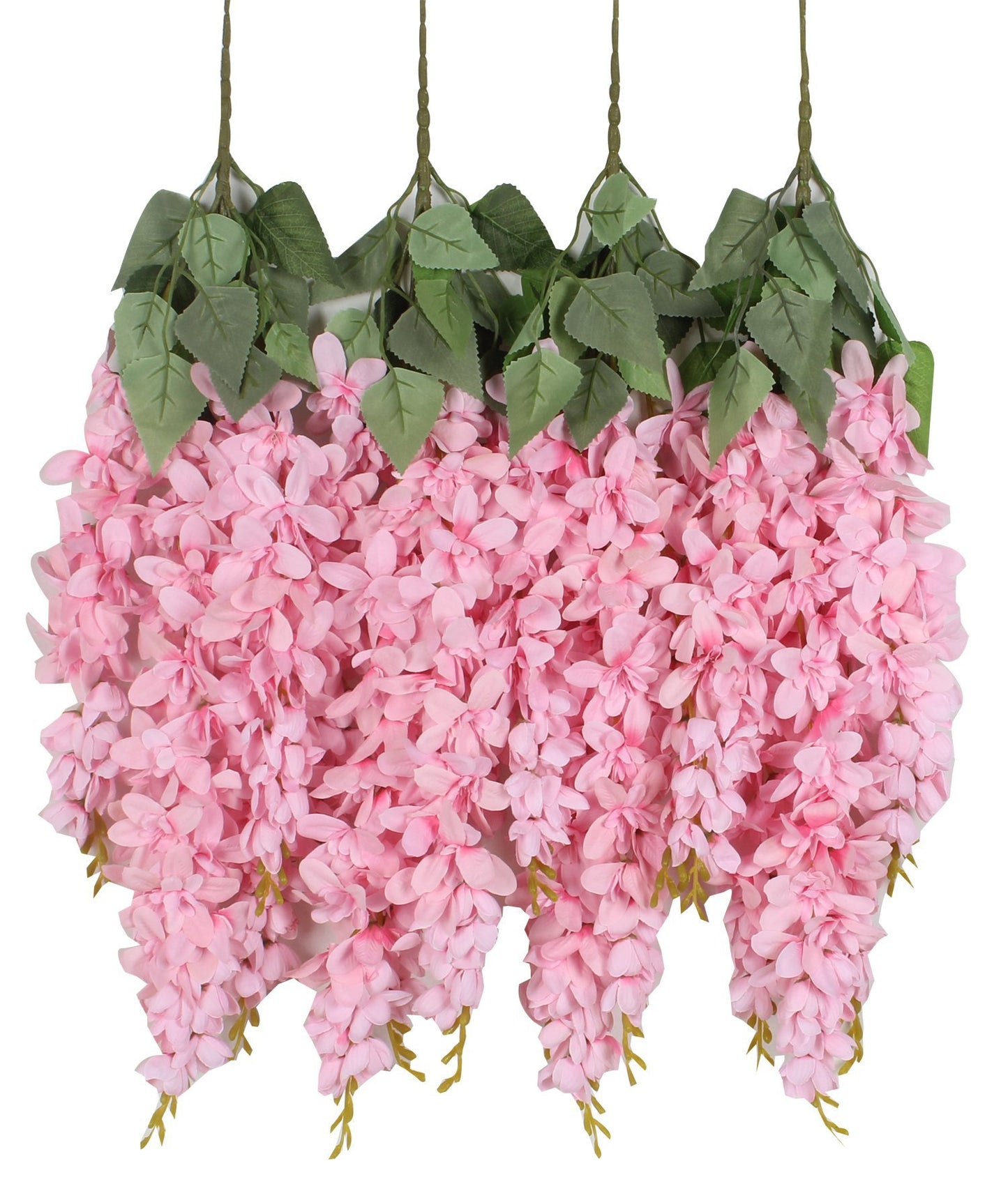 Duovlo Silk Wisteria Flower Artificial 2.13 Feet Hanging Wisteria Vine Fake Flower Bush String Home Party Wedding Decoration,Pack of 4 (Pink)