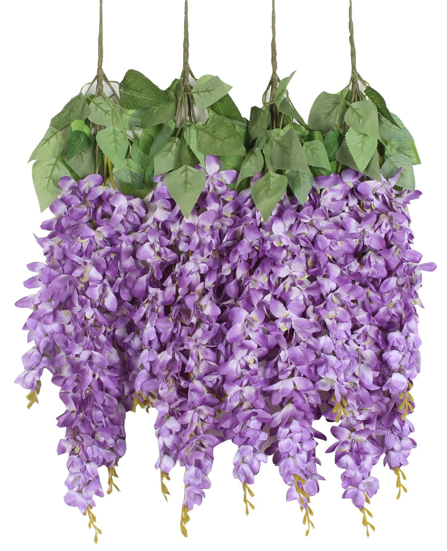 - INCLUDING: this is a 4 pack of 25.5 inch pieces wisteria flowers Vines.And natural-looking flowers, Full and soft petals,vivid realistic.