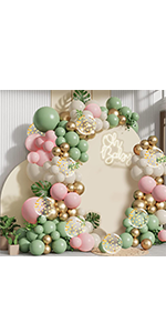 143pcs Sage Green Light Pink Sand White Blush Metallic Gold Balloons
