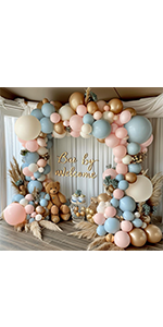 - Baby Shower Decorations: The blue beige gold balloon garland kit is perfect for engagement, wedding, anniversaries, baby shower, boy birthady party, bridal shower, teddy bear themed parties and more. The glittering golden colorful paper crumbs balloons add interesting atmosphere to your party, creating unforgettable memories for you and your family.
