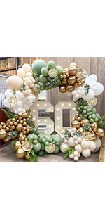 134 pcs Sage Green Sand White Metallic Gold Matte White Confetti Gold balloons