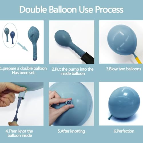 - HIGH-QUALITY & REUSABLE: These double-stuffed dusty blue balloons are safe, non-toxic, and 20% thicker than common slate blue white sand balloons. They are highly durable and long-lasting, making them less prone to breakage. Some customers have reported that their light blue and white balloon arch remained intact for up to 2 weeks while still maintaining a pristine appearance