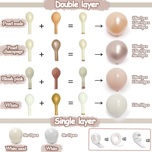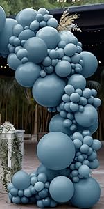 - DOUBLE STUFFED BALLOONS: Our dusty blue white balloon garland kit include 5'',12”and 18” dusty blue, fog blue, pearl dusty blue, pearl white sand balloons. We add double stuffed blue balloons to make your bridal shower balloon arch more unique! If you want to make a rich pearl dusty blue balloon arch, we recommend buying 2-3 packs of this blue balloon set