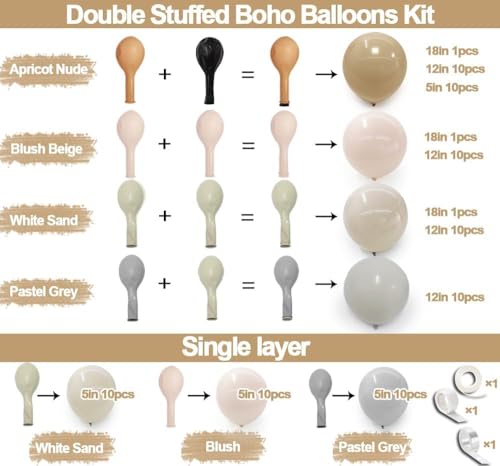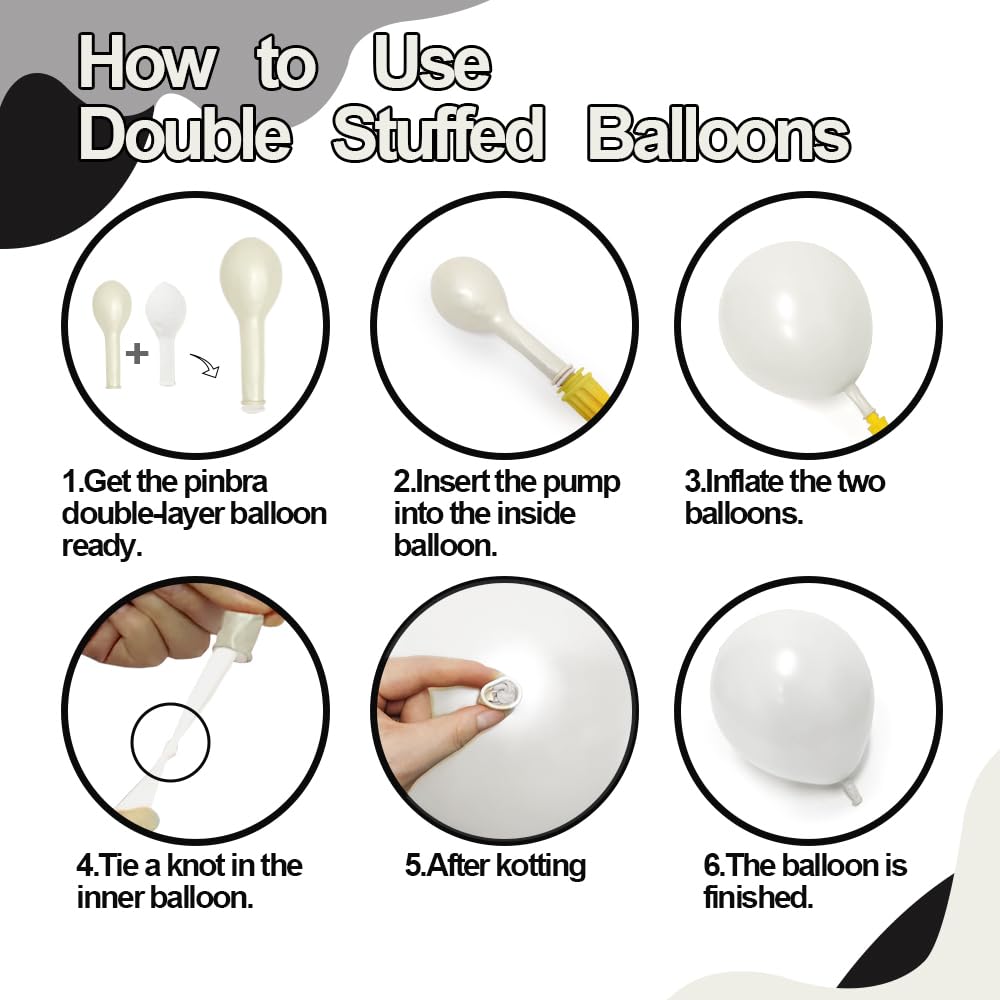 You can make the balloon as big or small as you want. It is easily and conveniently, that when you inflate the double stuffed balloons, you only need to knot the inner balloon.If you want to make a large balloon arch, we recommend you to buy 2 or 3 sets of this kit.
