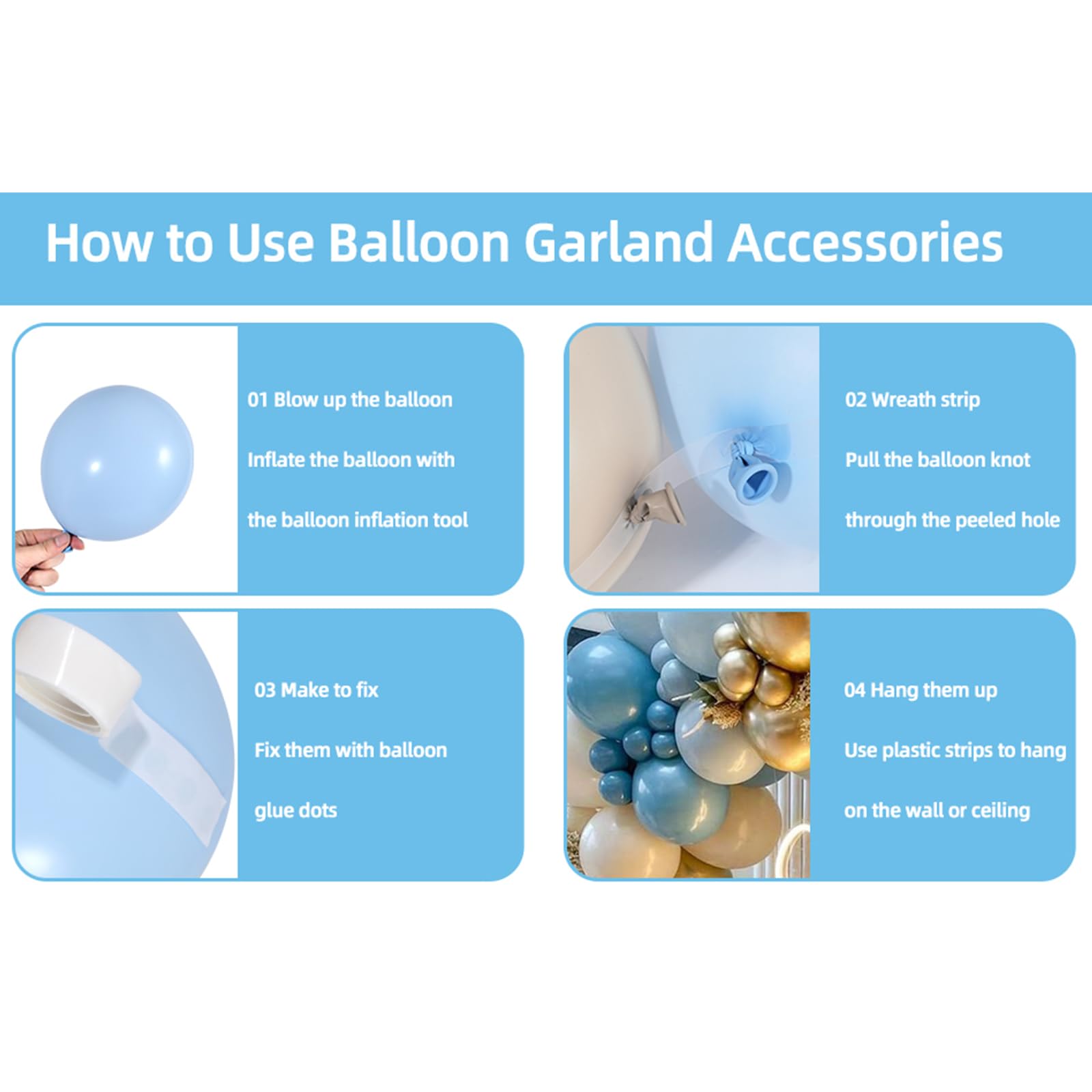 - š Elevate the Party Vibes: Our Blue Balloon Arch kit includes 125 balloons in gorgeous dusty blue, baby blue, sand white, and white. With included balloon adhesive dots, a balloon chain, and balloon string, assemble your Effortlessly create breathtaking balloon arches or dreamy garlands, transforming your space into a captivating haven.