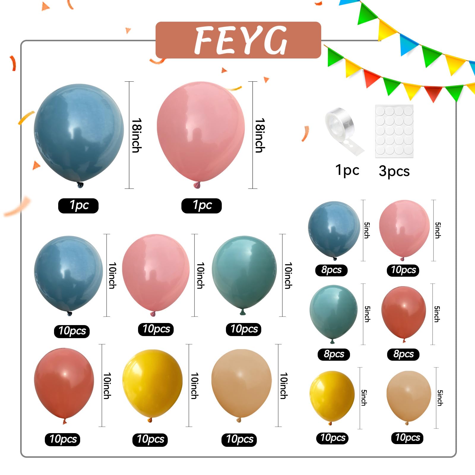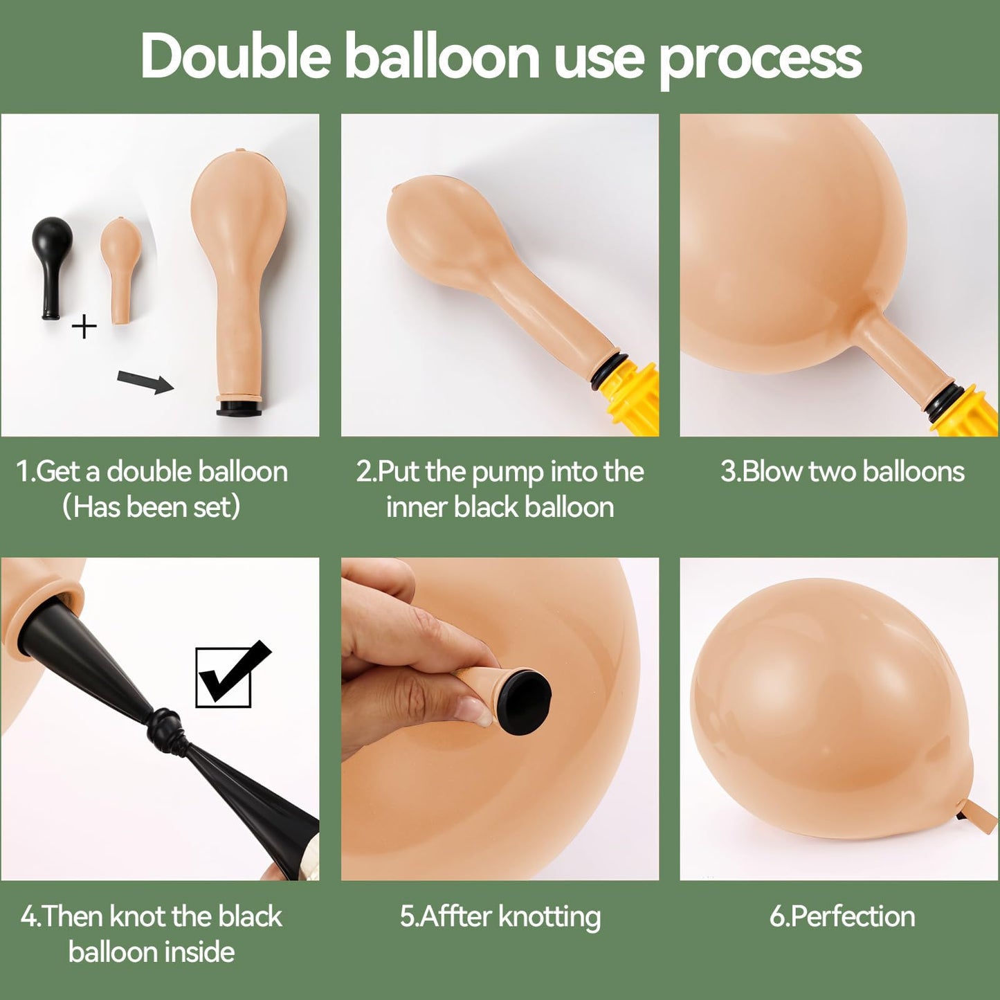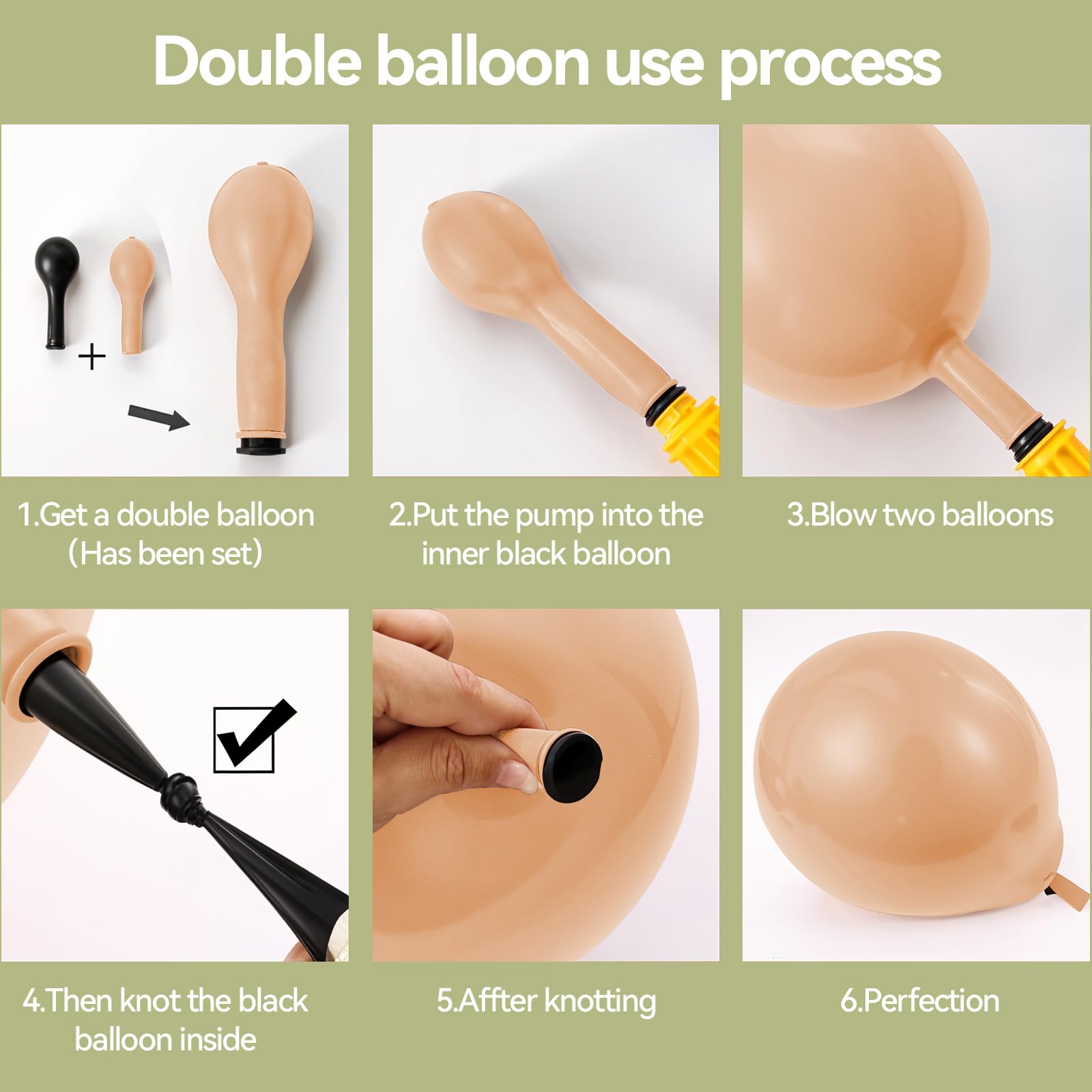 - Double Filled Dusty Pink Balloon Arch: includes double stuffed nude white balloons(5"10pcs+10"15pcs+18"1pcs), double stuffed apricot/tan/brown balloons(5"10pcs+10"15pcs), dusty pink balloons(5"13pcs+10"20pcs+18"1pcs), baby pink balloons(5"10pcs+10"20pcs+18"1pcs), 1 * balloon chain, 5 * dispensing. If you want to make a rich double-layer filled balloon garland, 2 packs of dusty pink nude balloon kits can create a larger party scene well.