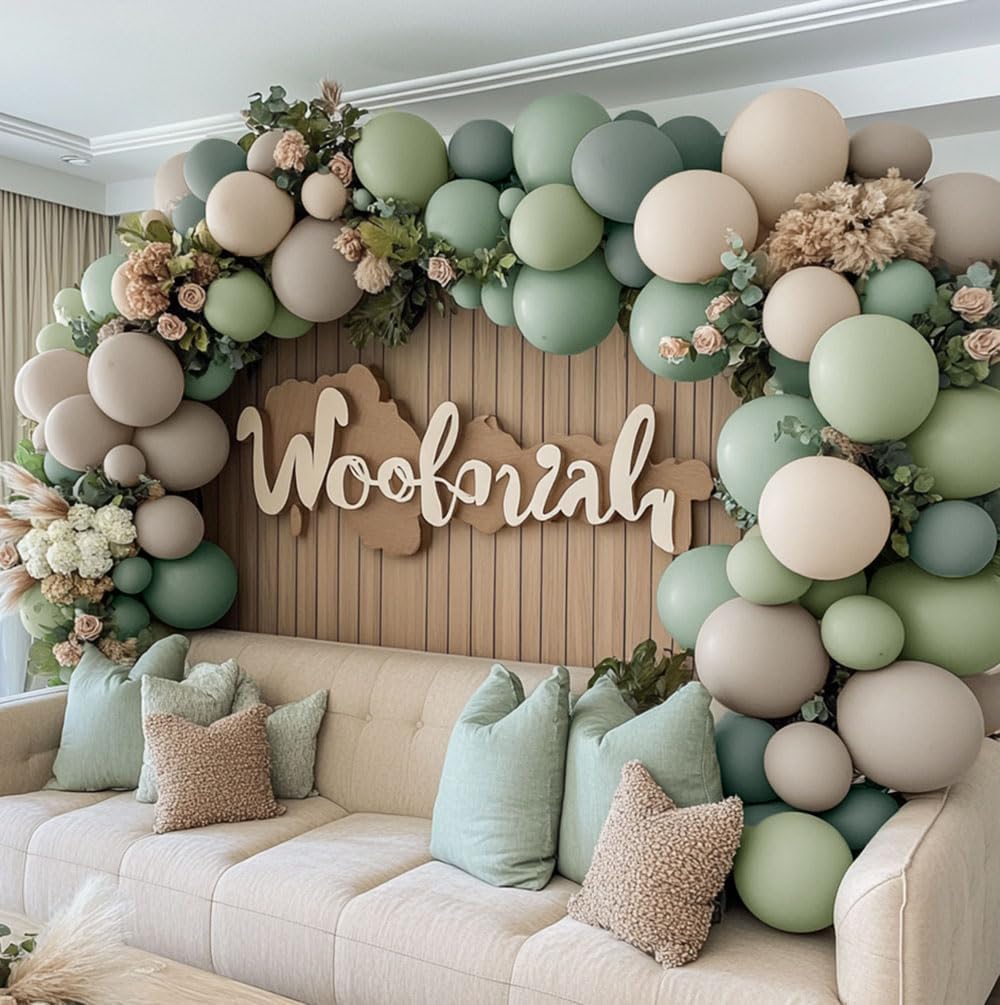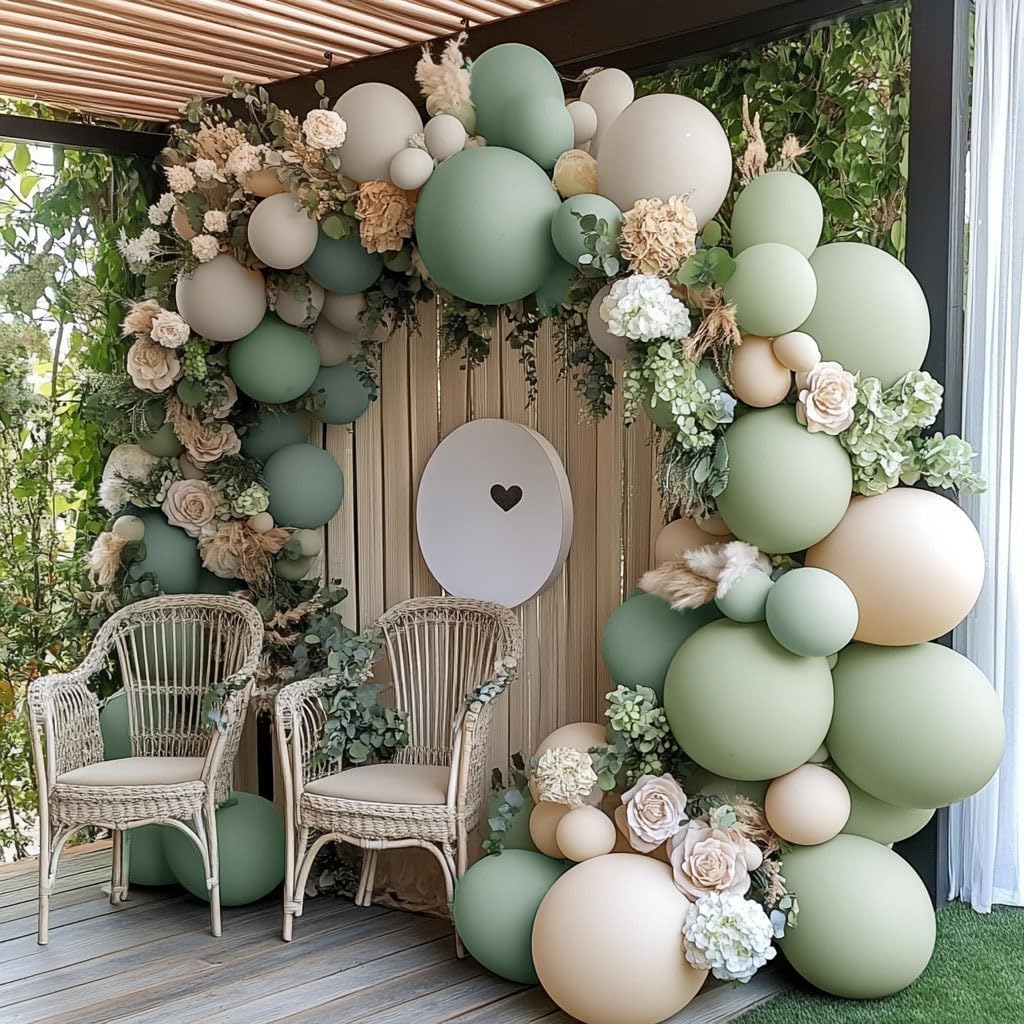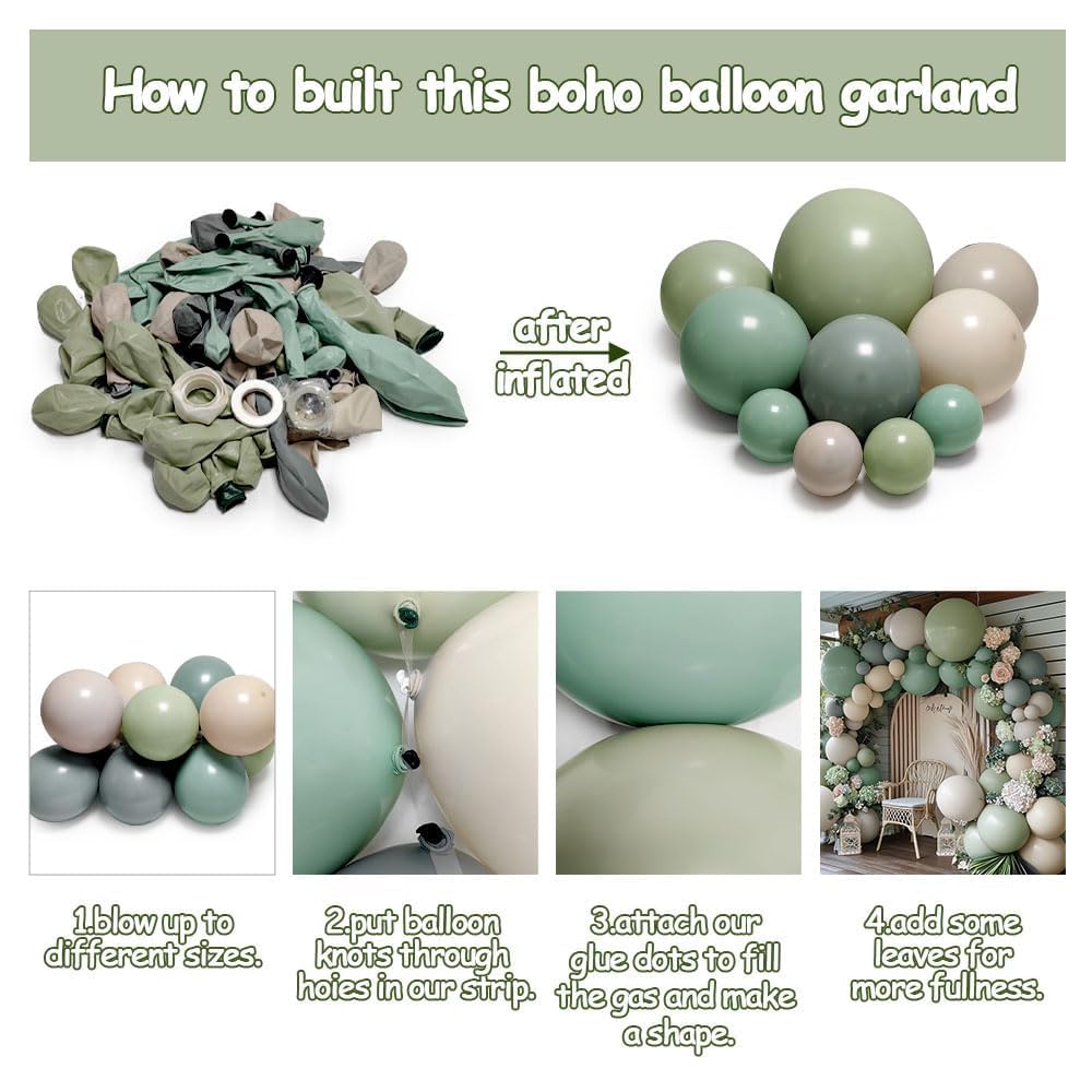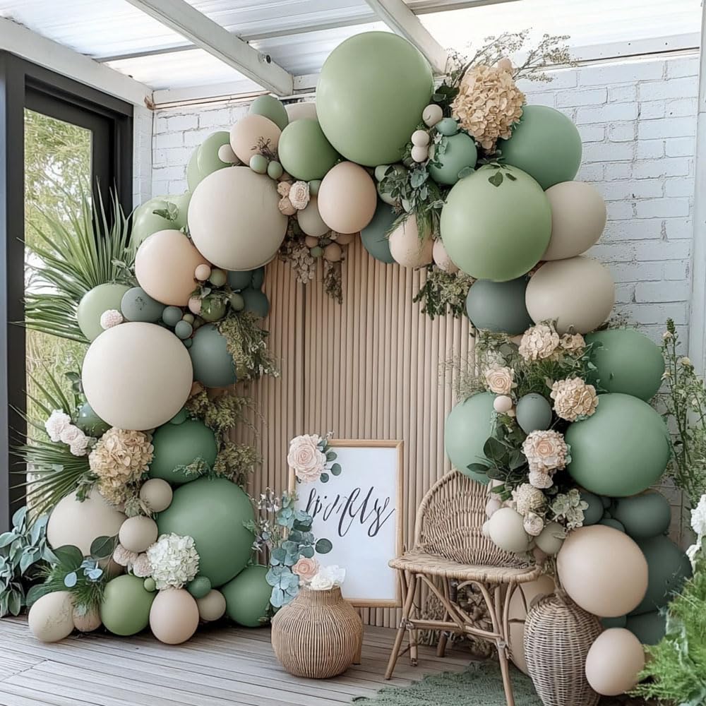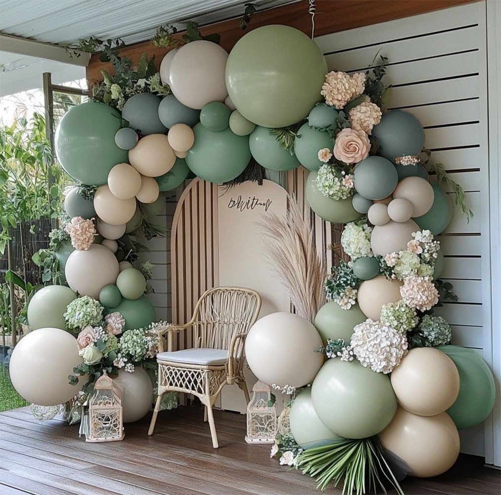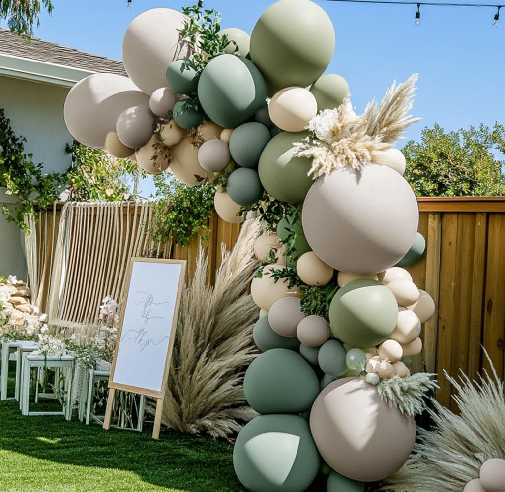 Dark Green and Sage Green Balloon Garland Double Stuffed Dusty Sage Green Bal...
