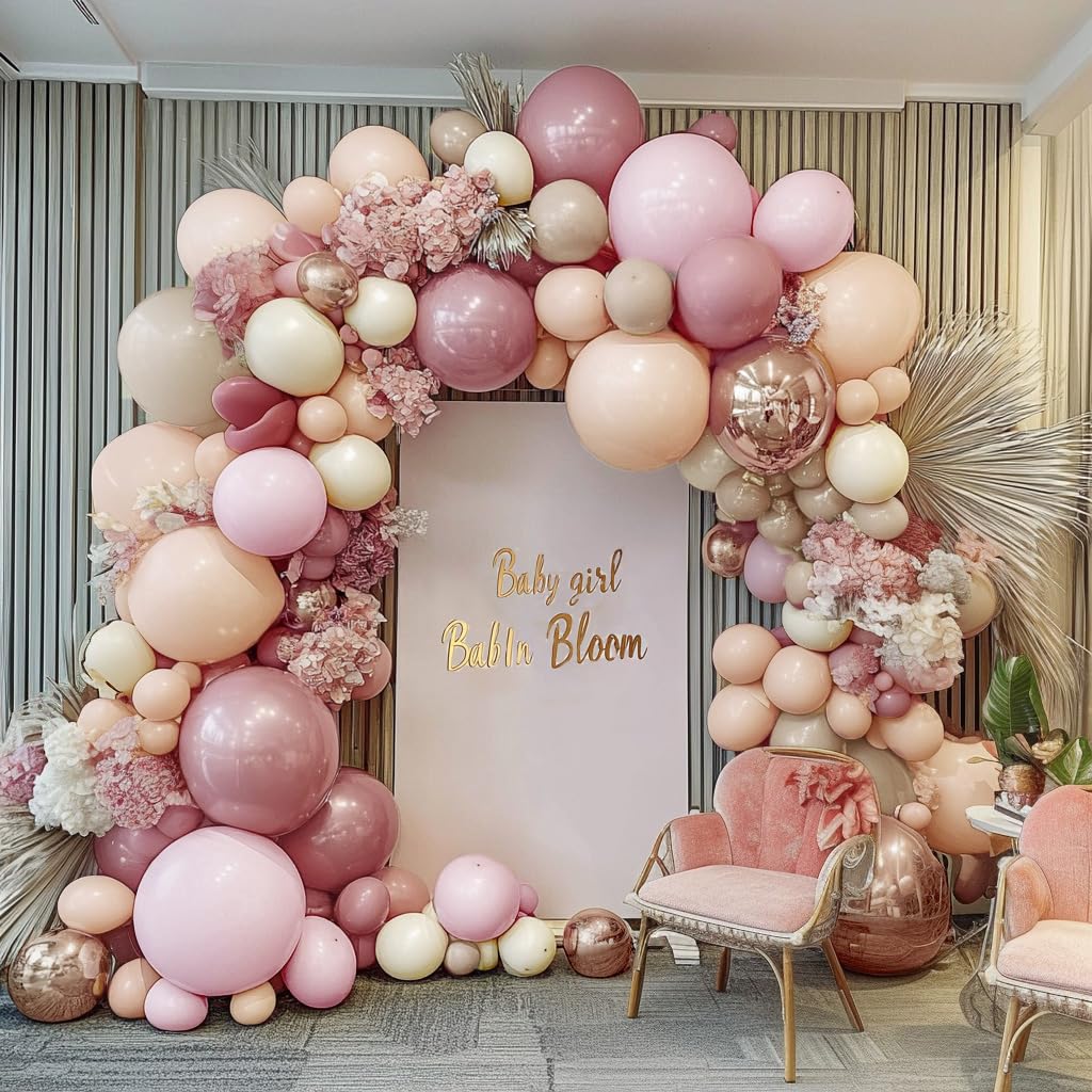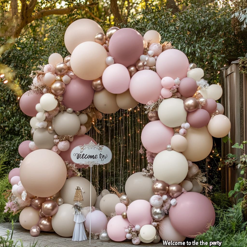 - THE FUN OF DIY-Dusty pink nude balloon arch to meet your party needs.This DIY pink cream white balloon garland will be sure to create an eye-catching balloon garland at your next party or special event. Please bear in mind that the photo may vary slightly from the actual item in terms of color due to the lighting during photo shooting or the monitor's display. If you want to make a pink rose balloon arch or get rich and luscious looking,we recommend to buy 2-3 packs of this balloon kit.