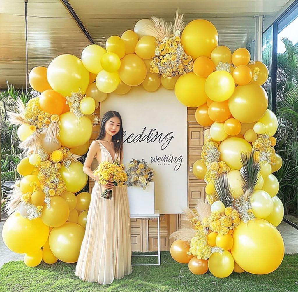 - Step 3: Use balloon glue points to glue some remaining balloons to the already made balloon arch to make the balloon shape more layered and catch eyes.