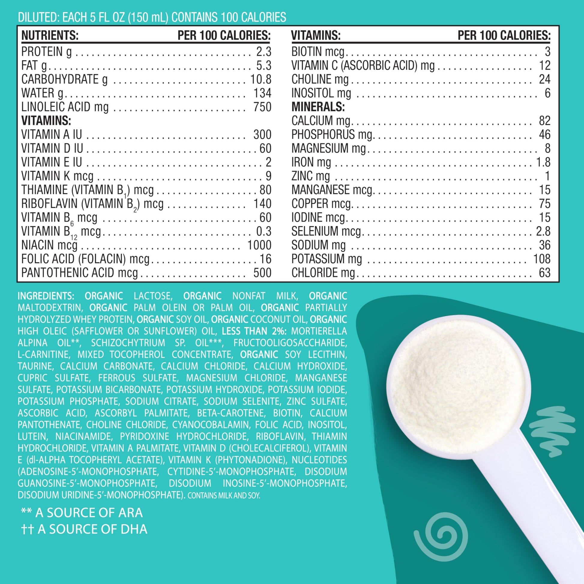 - Nutrition First: Made with organic* milk from grass and grain-fed cows (!), our Gentle Infant Formula with Iron has lutein, prebiotics, and DHA and ARA to give your baby nutrients that support the body’s defenses, brain, and eye development