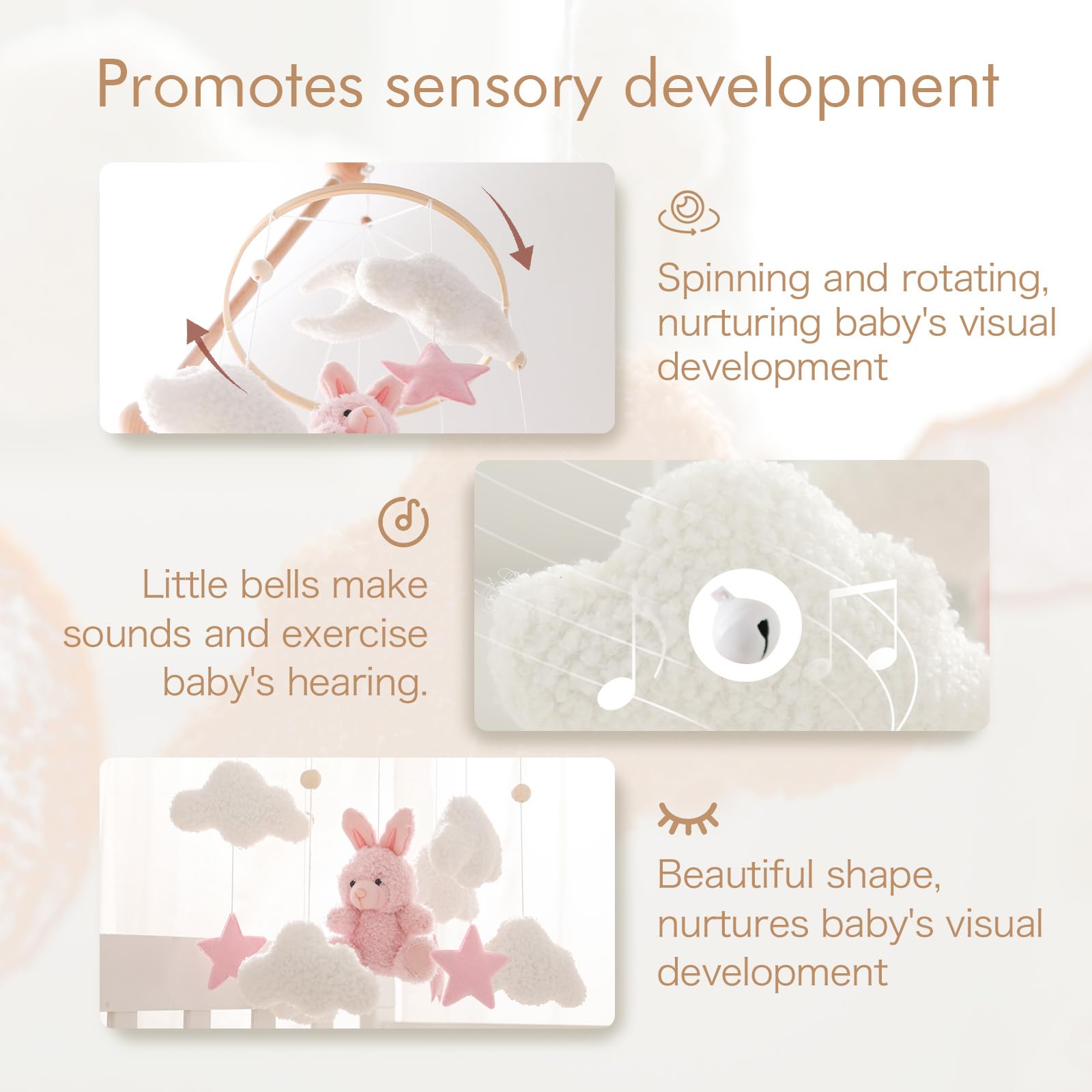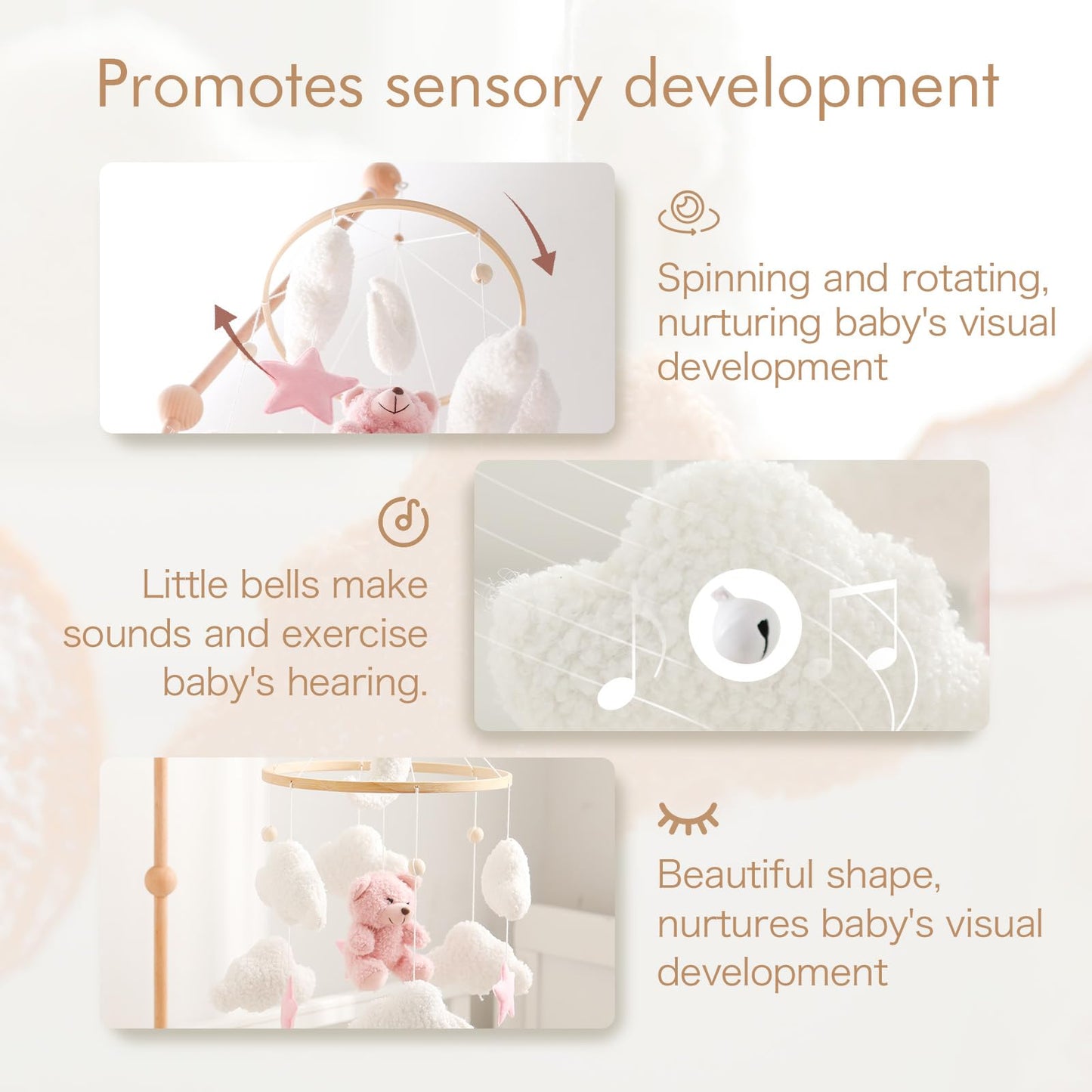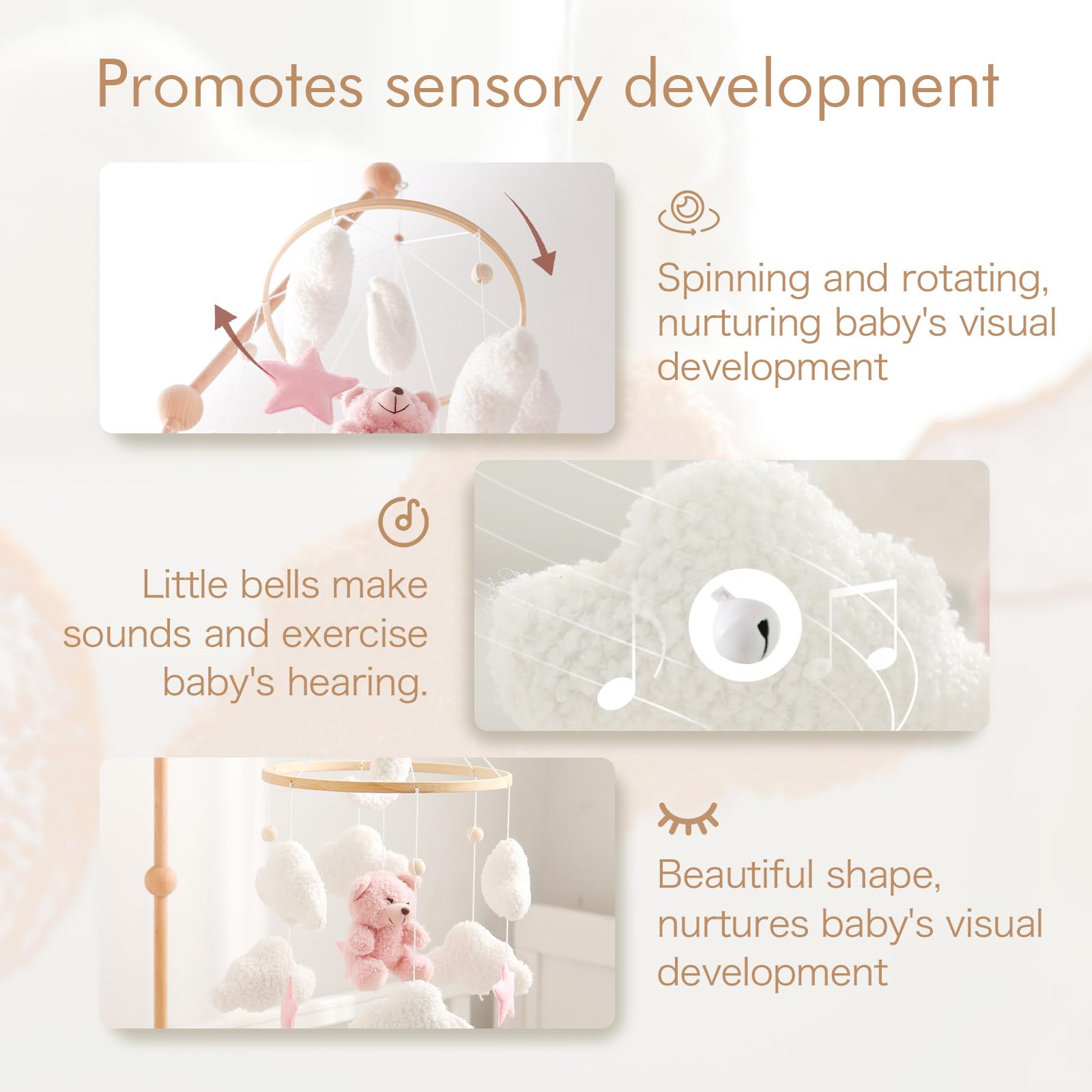 - Premium Material & Handmade:This baby mobile is made of soft teddy velvet and natural wood,100% Eco-Friendly. Each piece is attached to a sturdy string and hand-tied, which is safe and durable